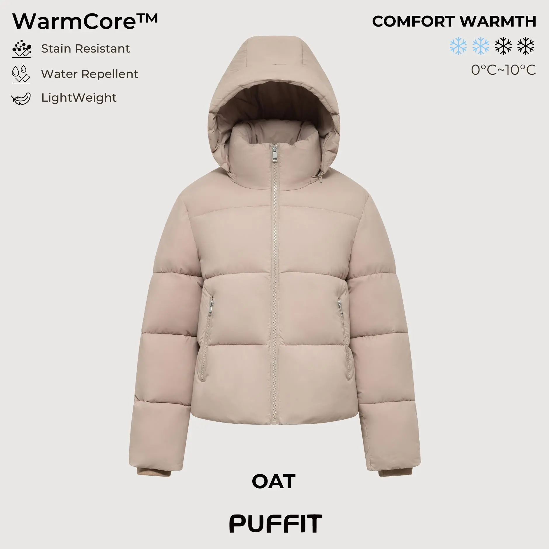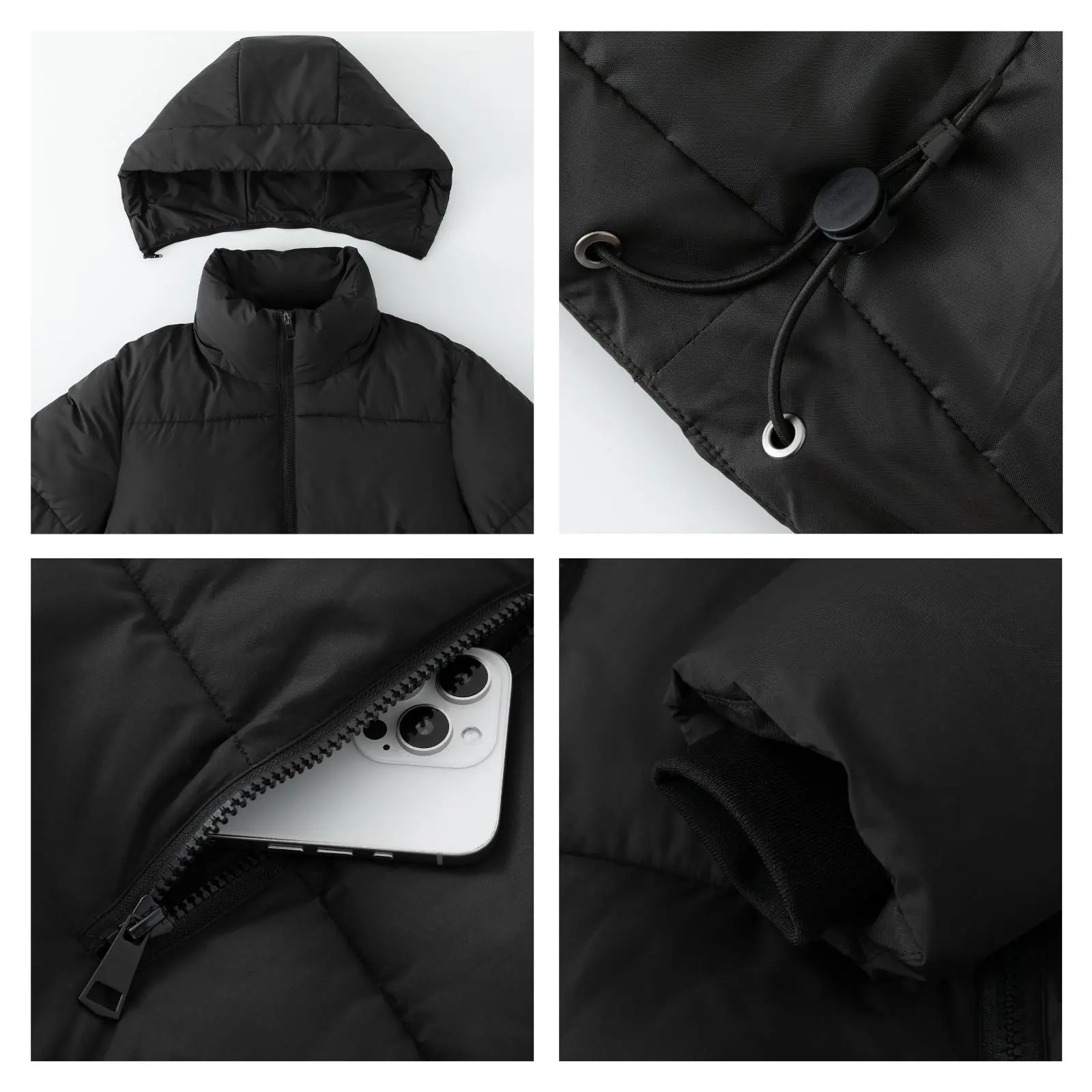 - Windproof, rain-proof and snow-proof hood.