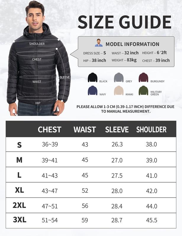 ·【Easy to pack】: Mens puffer jacket with hood,you can store it in a minute and put it in the waterproof small bag, Our men's foldable light insulated puffy coat is very suitable for casual wear, outdoor work,packable thermal bubble jacket men will not take up any place in your luggage,backpack,bag,so that you can travel without pressure.