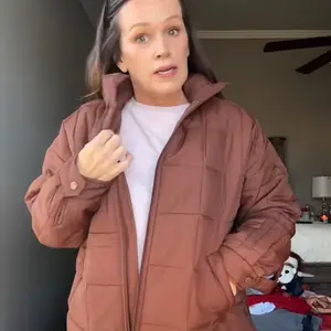 Not too puffy and not too thin… longer in the back which I love!! True to size… I am 5’3” and 135lbs and I’m in a medium with plenty of room if I want to wear a thick sweater underneath … arms are long and fit well!! Would definitely order again!!!