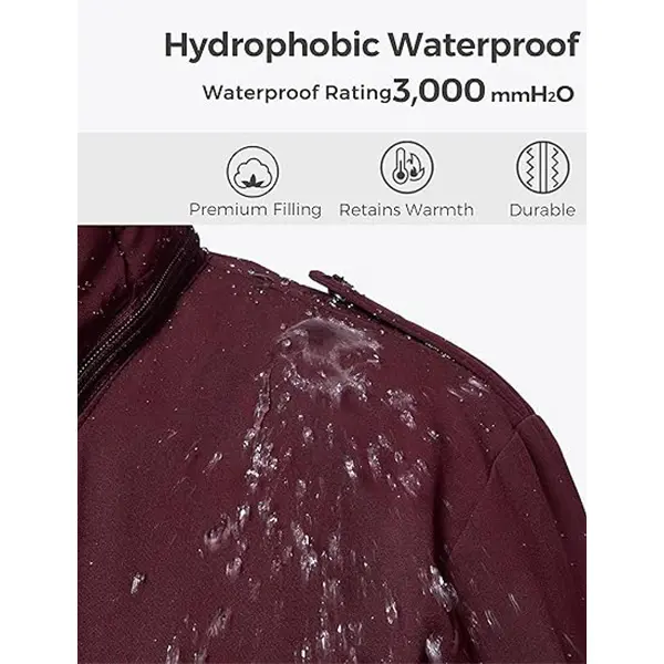 ·100% Recycled Waterproof Fabric- Our winter jackets for women are made with recycled polyester, which requires far fewer resources than new fibers and generates fewer CO2 emissions. The shell fabric with a 3,000mm waterproof rating effectively keeps out light rain. Stay protected no matter where your adventures take you with our warm puffy coat.