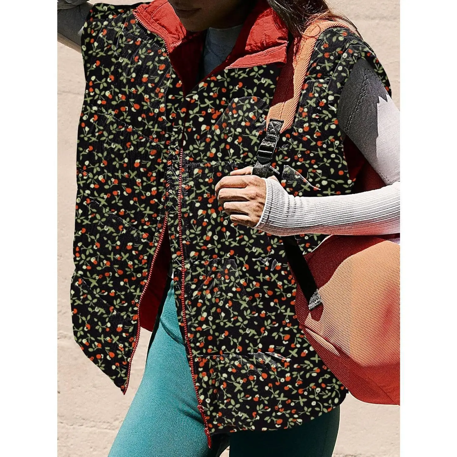 I’m going to end up having every single color option in this one 🤩🤩 #floralvest #vest #oversizedvest #puffervest #floralpuffervest