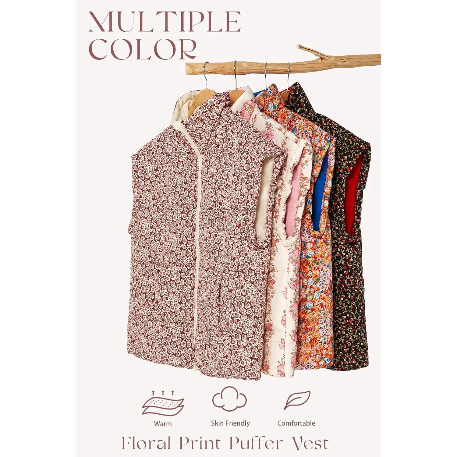 Multiple Color Floral Print Puffer Vest
