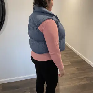 Love this vest!! Fits true to size. It’s a little cropped which is what I was going for. Looks just like the picture!