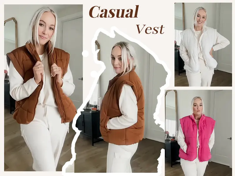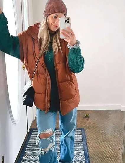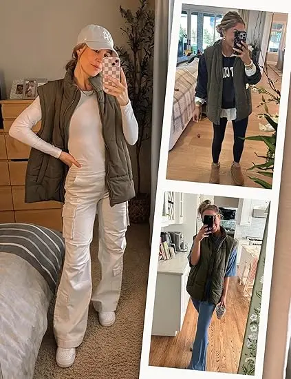 Women's quilted lightweight outerwear vests are the perfect addition to your winter wardrobe. Our cap sleeve puffer vest comes in classic black, brown, apricot, hot pink, and armygreen colors. It ensures a timeless and trendy look. The loose fit and lightweight design allow for easy layering without sacrificing comfort.