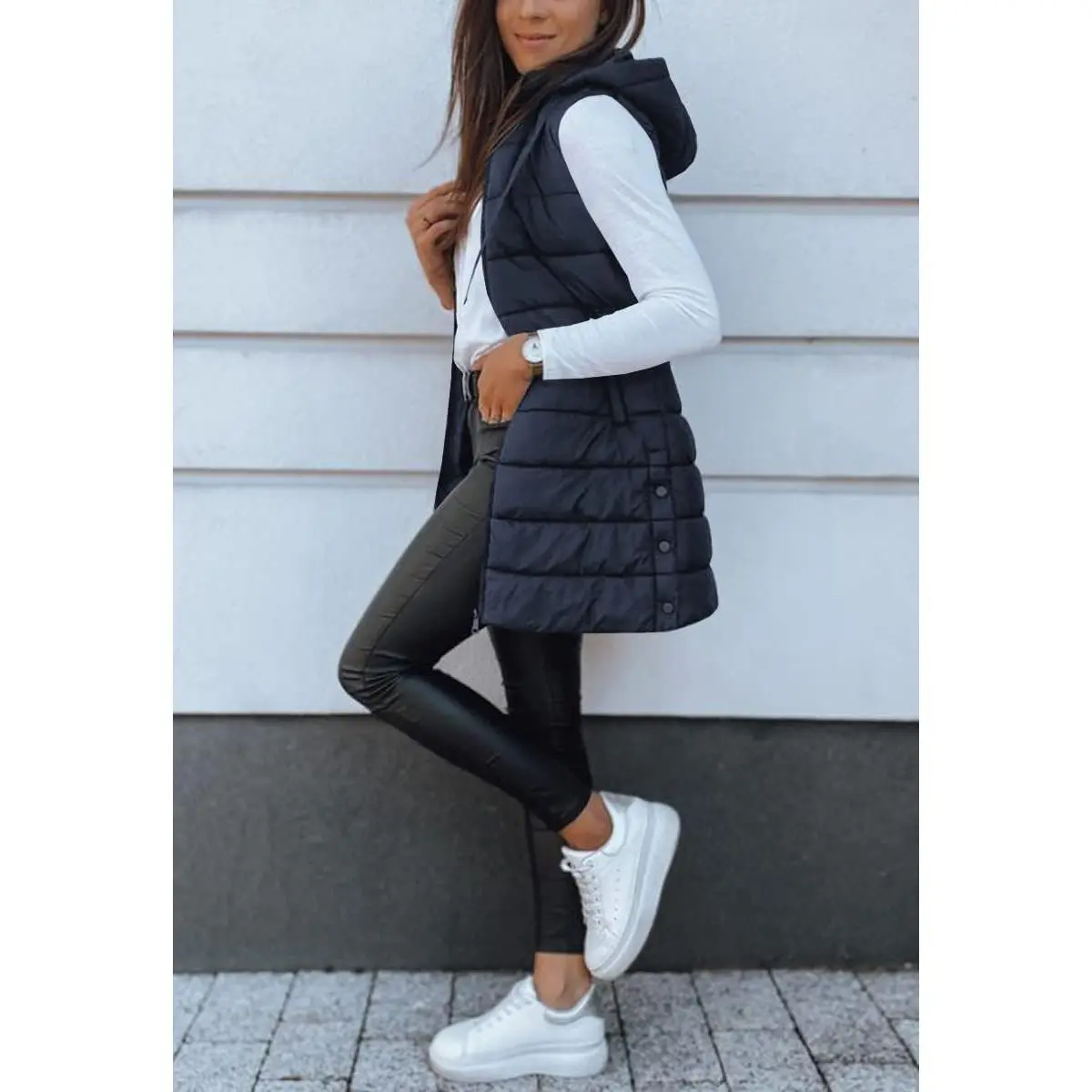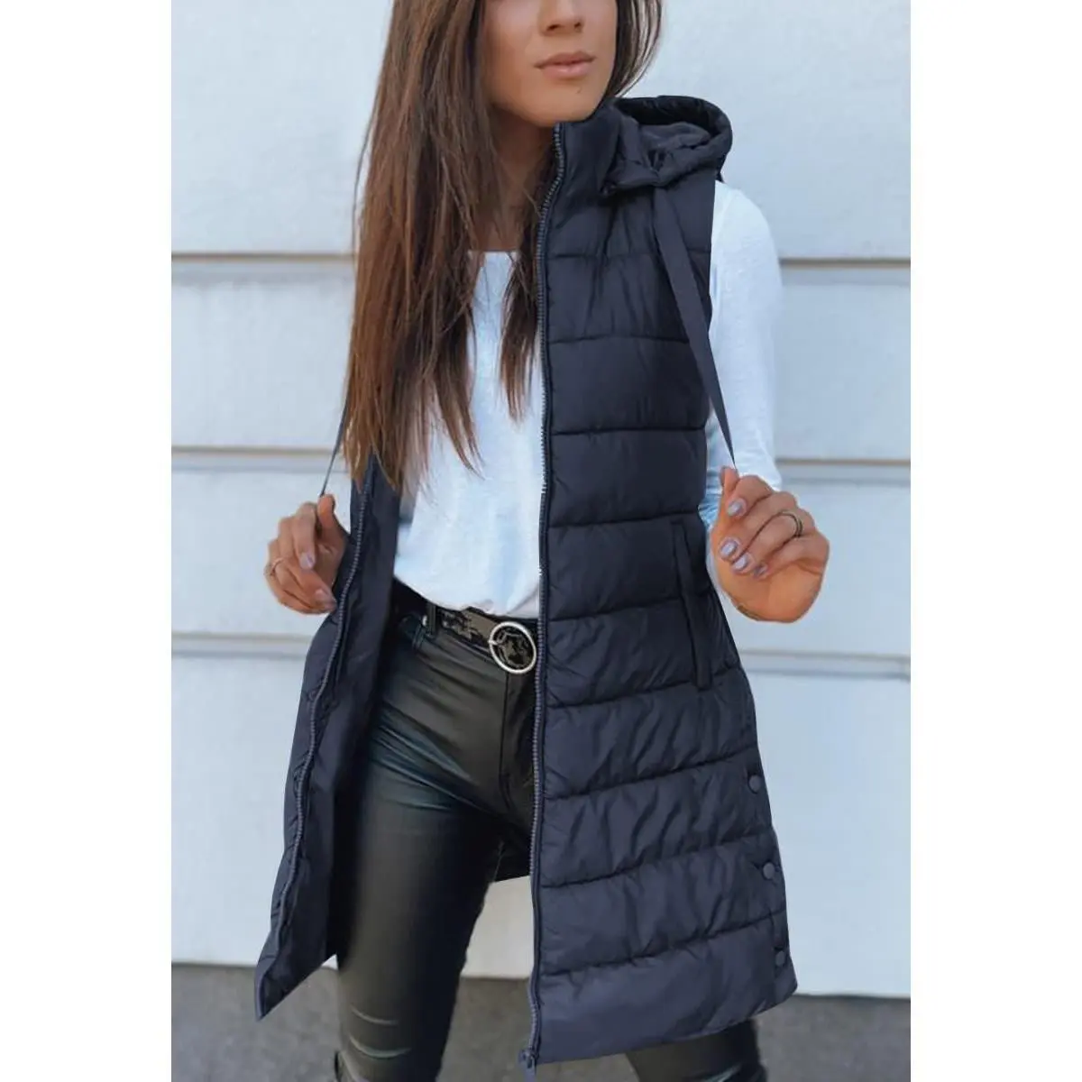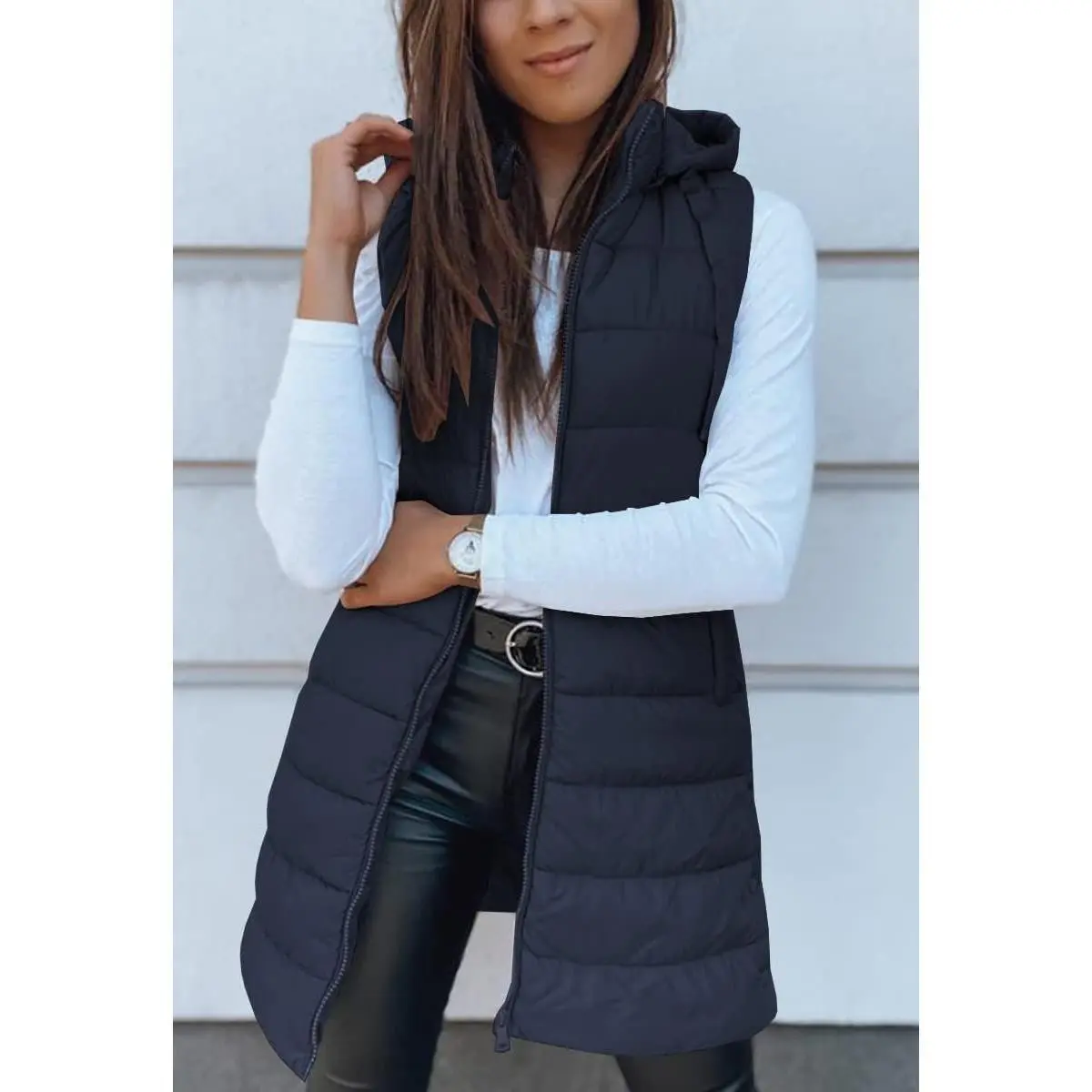 Unique Design - long vest, puffer vest, sleeveless, hooded, pocket, side slits, lightweight, solid color, trendy and casual.