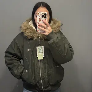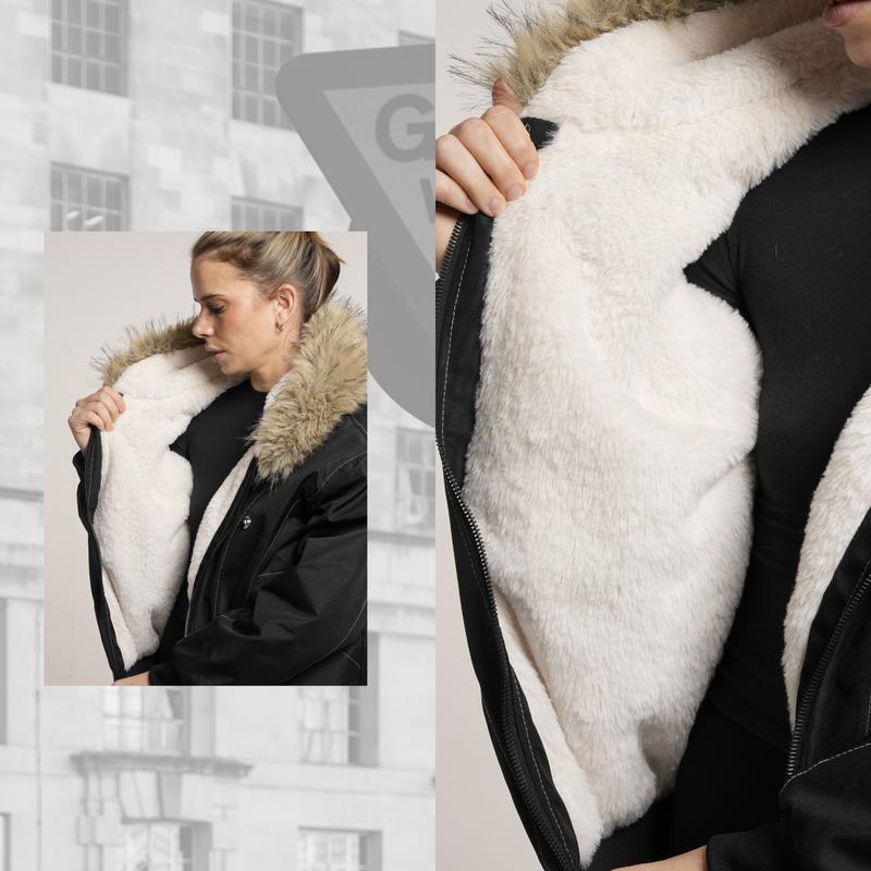 this jacket is amazing!! it even has the fur lining in the arms. i docked one star because i wish the pockets had the fur lining too. other than that this jacket is amazing. if they come out with a dark brown version i will 100% be buying it.
