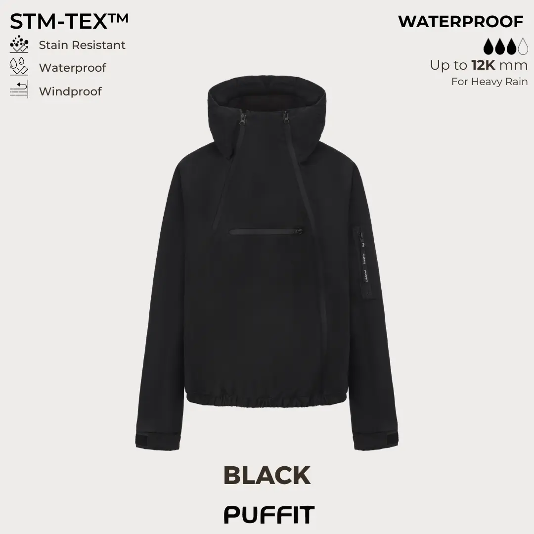5. PUFFIT STM-TEX Short Rain Hoodie With Asymmetric Zip and Adjustable Hem,Chest Pocket Design,Spring Hooded Jacket,Waterproof Jacket,Women Jacket,Spring Jacket,Windbreaker,Dog Walking,School Running,Football Mum