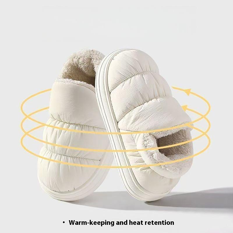 Puffy Cloud House Slippers Cozy Fuzzy Lined Thick Sole Winter Shoes Trendy Bread Style Warm Keeping Heat Retention winter warm fleece