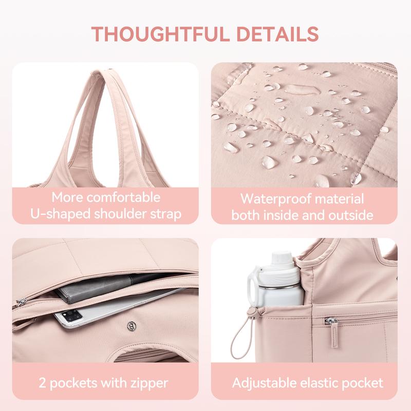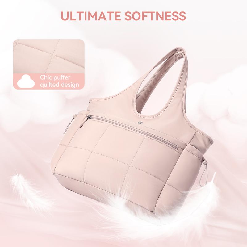 BOSTANTEN Puffy Tote Bag for Women Quilted Shoulder Bag 2PCS Large Travel Duffel Bag for Travel with Multiple Compartment
