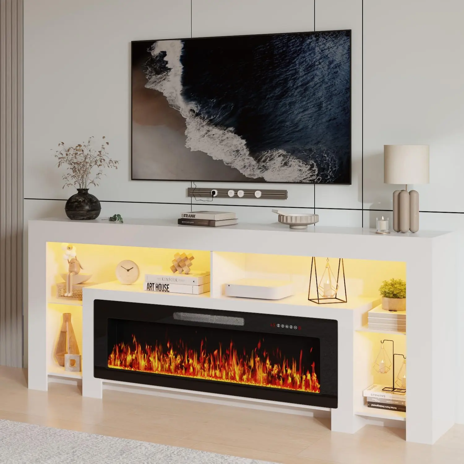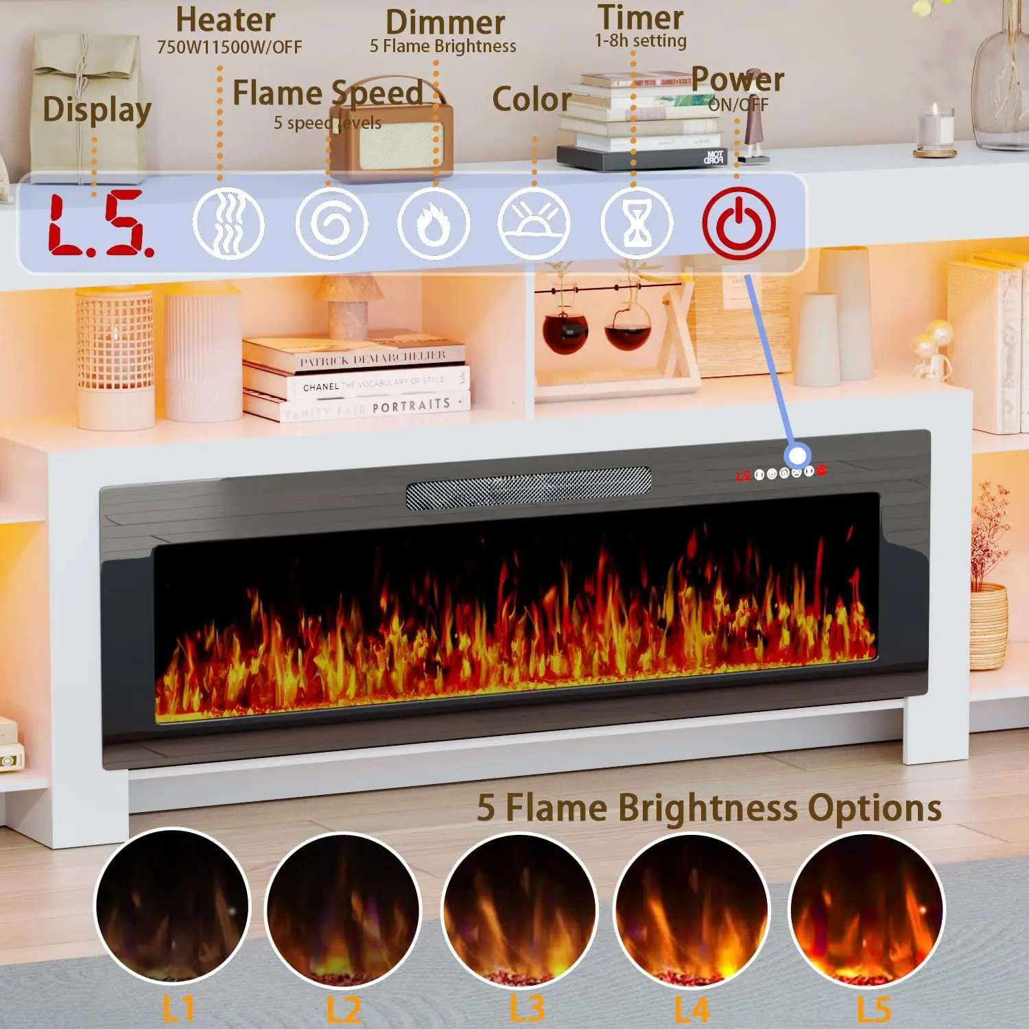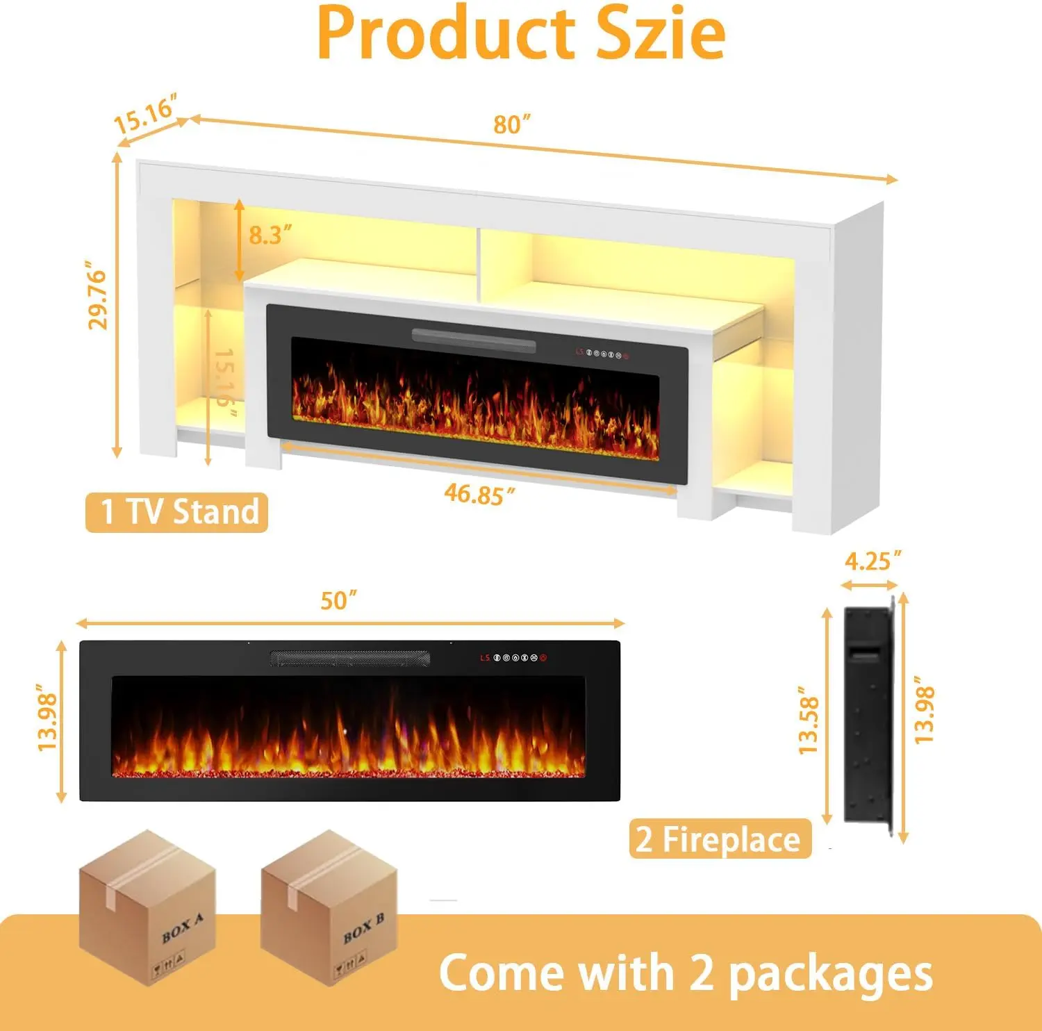 ·Fireplace TV Stand with Attractive Flame: The Fireplace TV Stand features a captivating 3D flame effect,can be heated or unheated to create a cozy atmosphere. It comes with a white 50-inch electric fireplace,can heat up to a 400-square-foot room, adjustable between 750 watts and 1,500 watts
