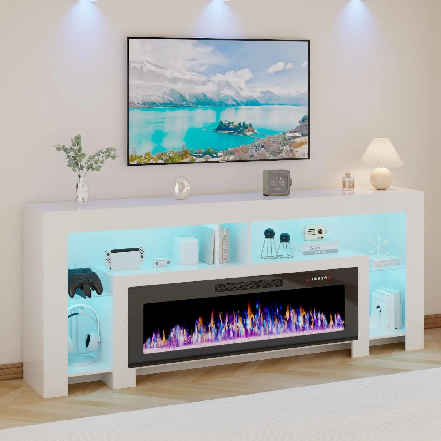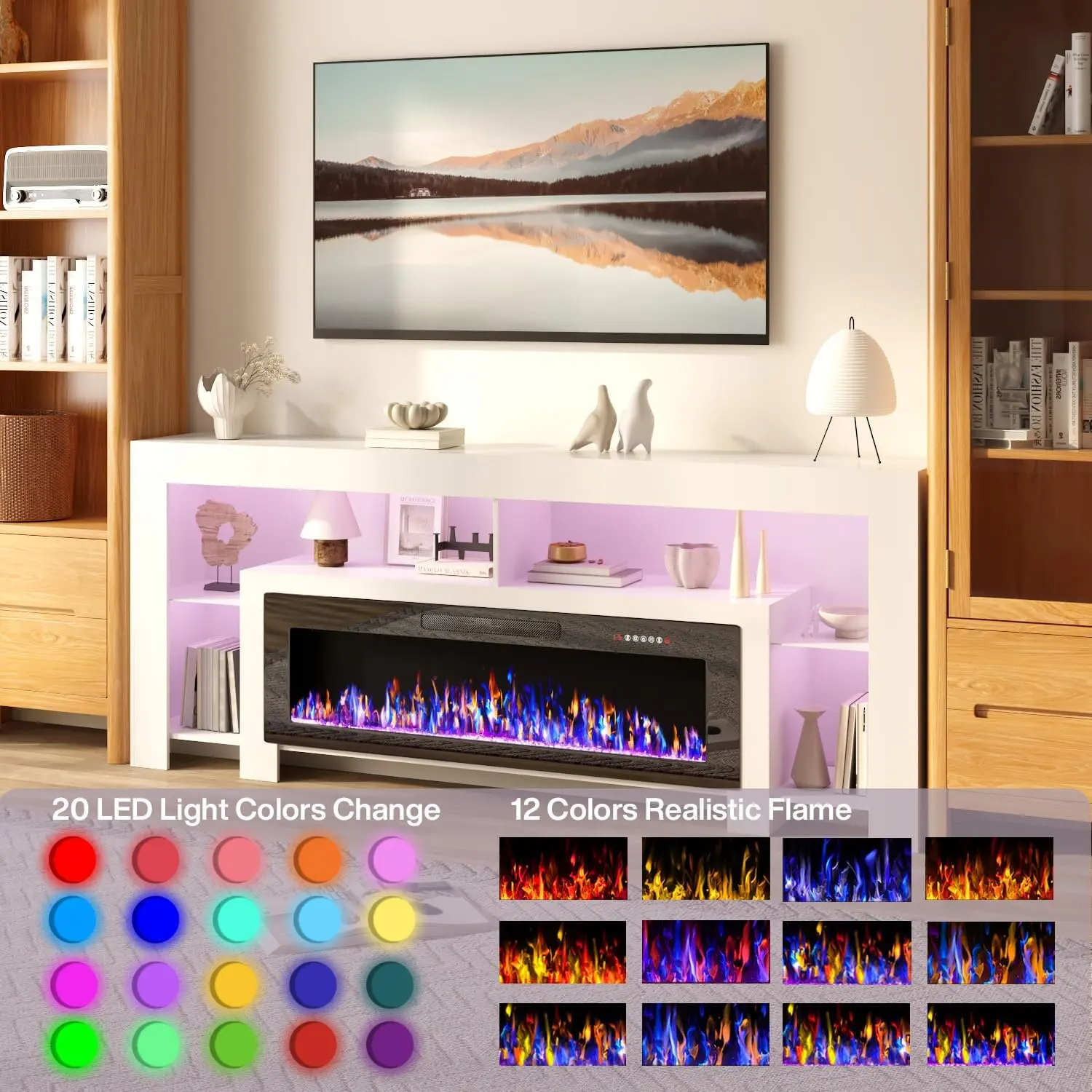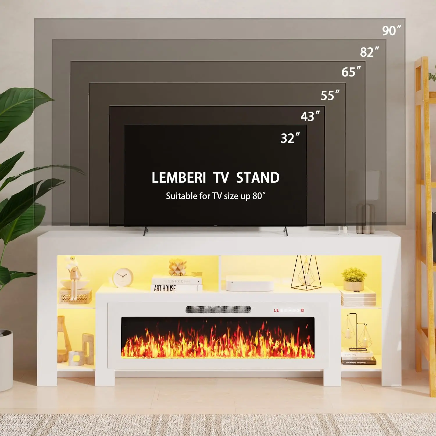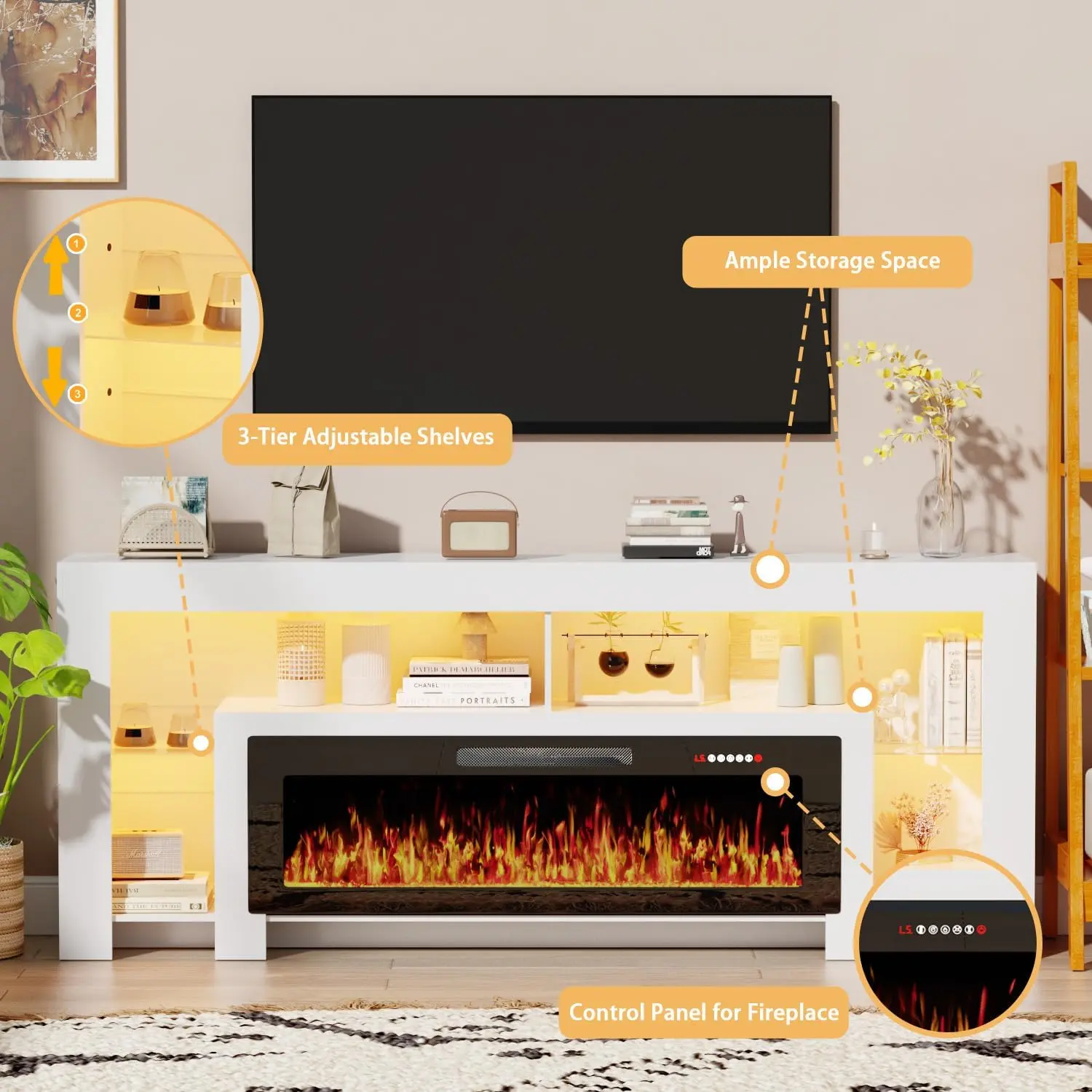 ·Fireplace TV Stand with Attractive Flame: The Fireplace TV Stand features a captivating 3D flame effect,can be heated or unheated to create a cozy atmosphere. It comes with a white 50-inch electric fireplace,can heat up to a 400-square-foot room, adjustable between 750 watts and 1,500 watts