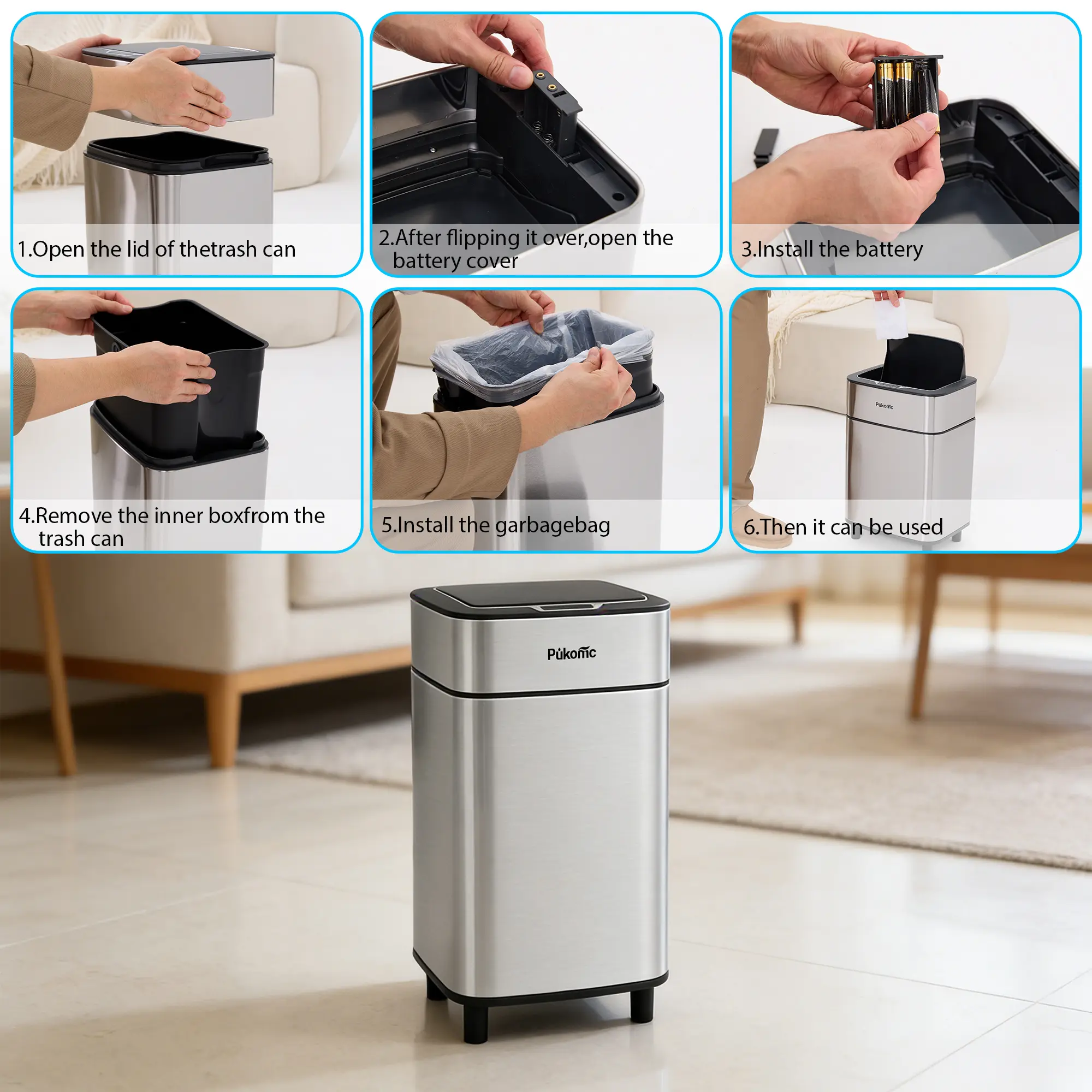 ·Stainless Steel: Made from stainless steel, this bin offers reliable performance.