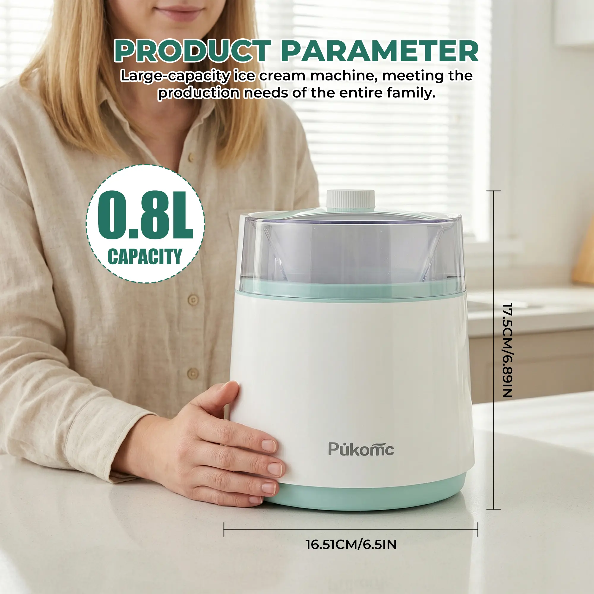 Make your ice cream creations with ease and enjoy the convenience of the Pukomc 2-in-1 Ice Cream Maker. Perfect for any kitchen!