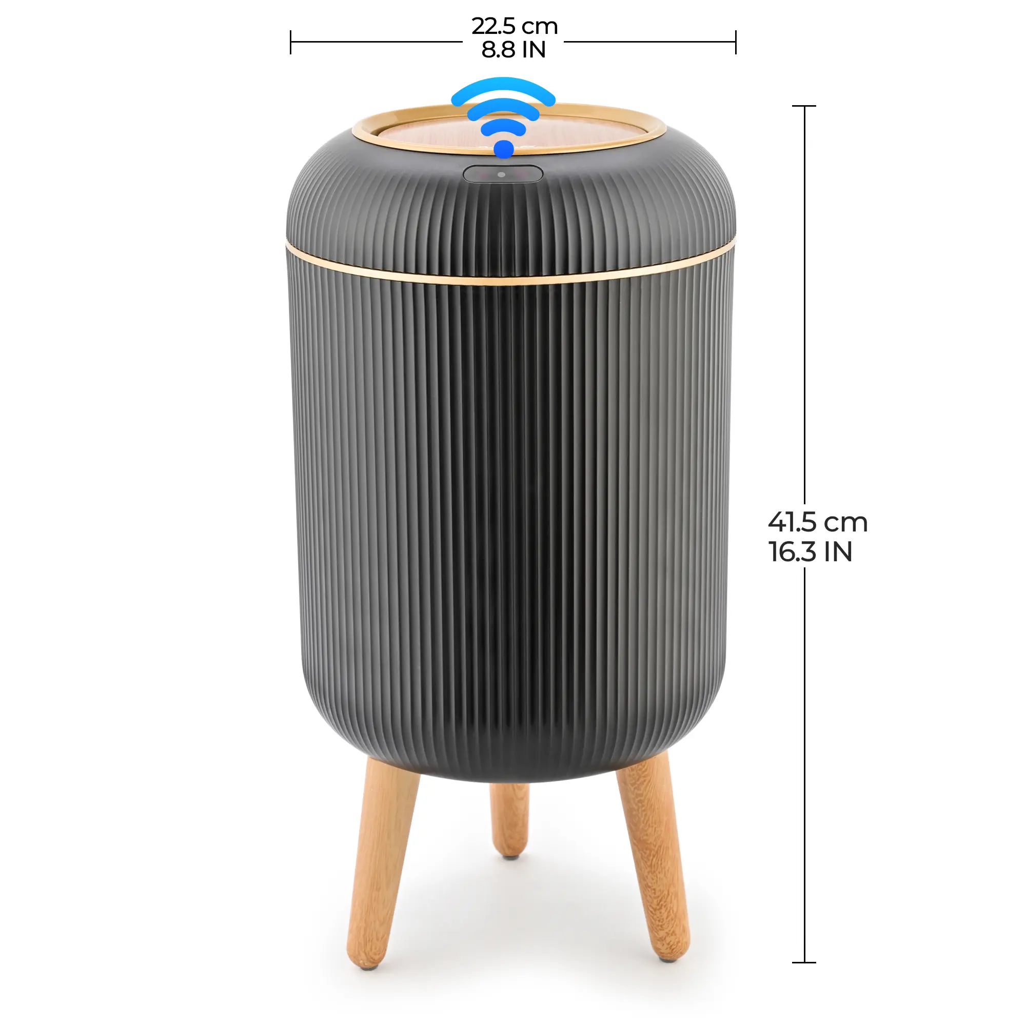 ·【NORDIC MODERN DESIGN】 - 8''L×8''W×16.3''H, 2.6 Gallons, durable ABS materials. 2 AA batteries (NOT INCLUDED). The simple appearance of this garbage can is more beautiful than the traditional trash can. The Nordic Modern design looks beautiful and clean. It is easy for guests to mistake it for a cute storage box or artwork.