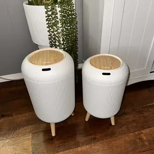 ·【NORDIC MODERN DESIGN】 - 8''L×8''W×16.3''H, 2.6 Gallons, durable ABS materials. 2 AA batteries (NOT INCLUDED). The simple appearance of this garbage can is more beautiful than the traditional trash can. The Nordic Modern design looks beautiful and clean. It is easy for guests to mistake it for a cute storage box or artwork.