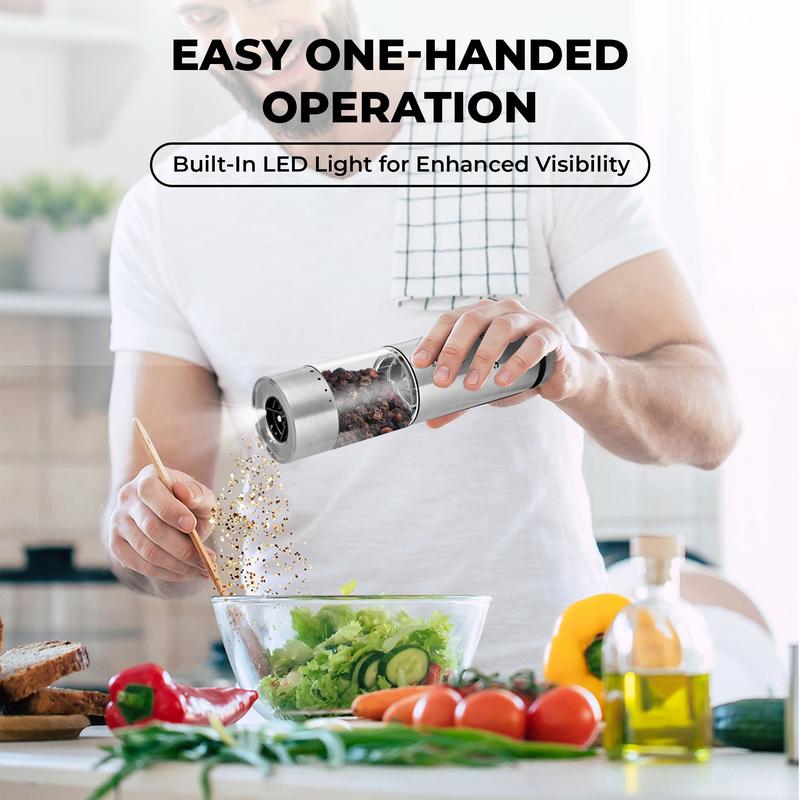 Electric Salt & Pepper Grinder Set brings convenience and style to your dining table. This set includes 12 grinders and accessories, ensuring you're always prepared. The adjustable coarseness allows for personalized seasoning. A rechargeable base powers these grinders, making them eco-friendly and convenient. The LED light adds a touch of modernity. One-hand operation simplifies use.