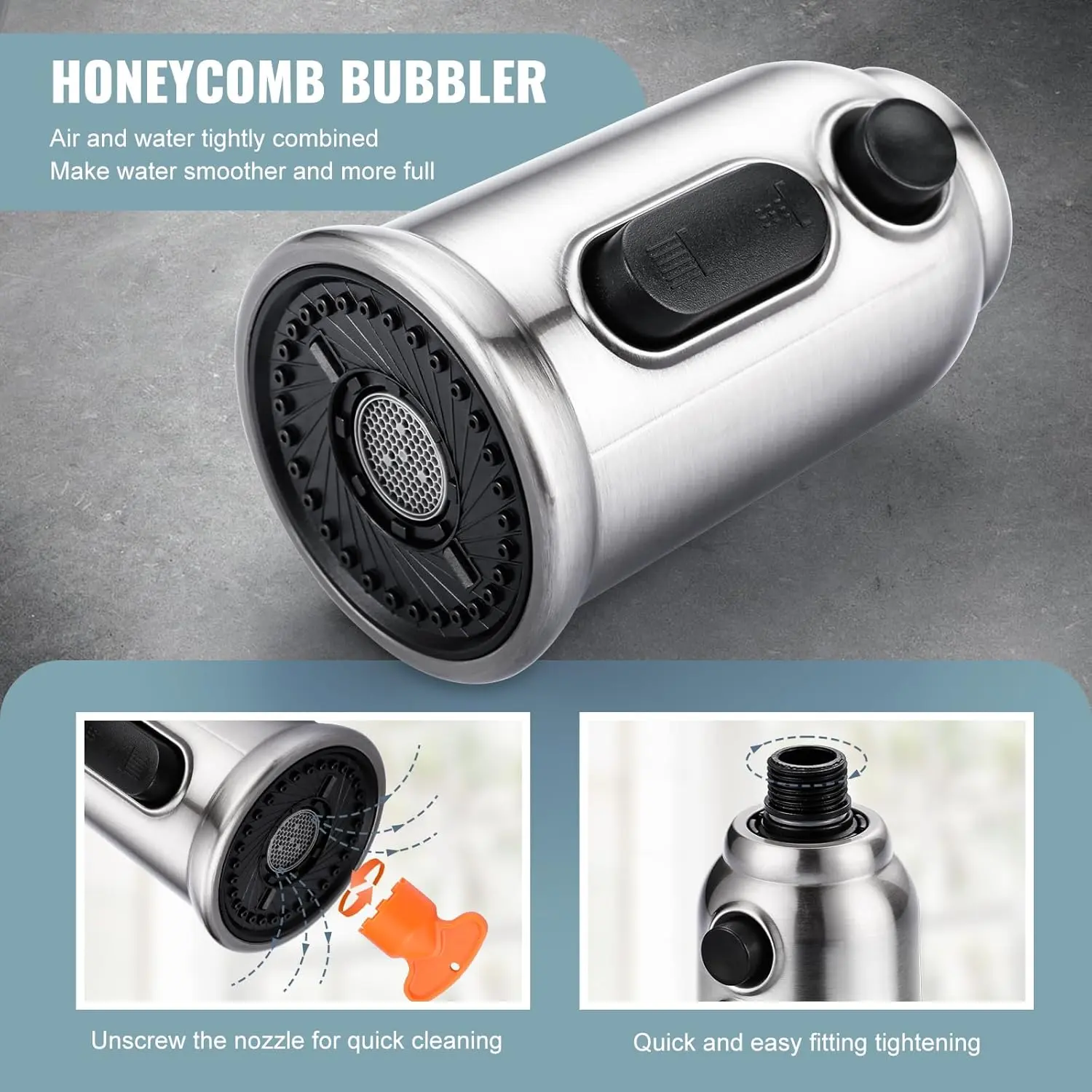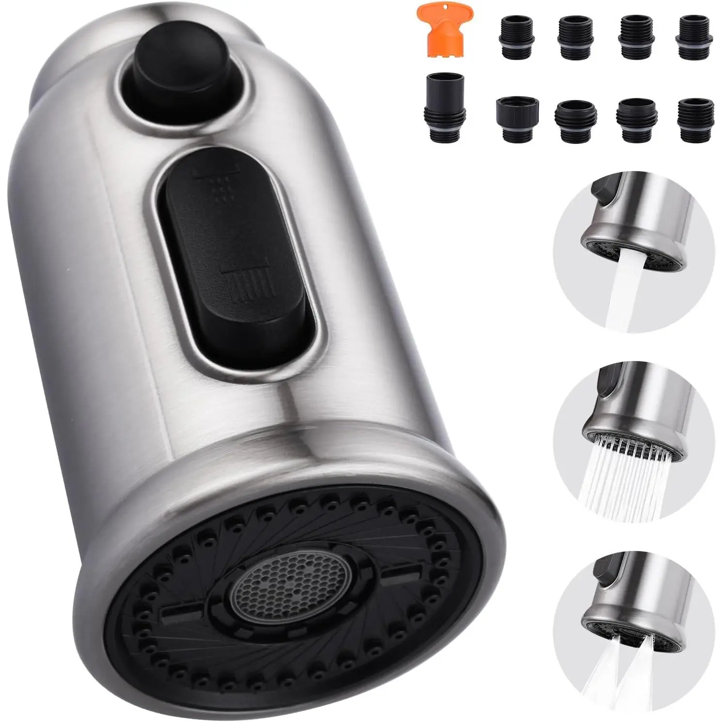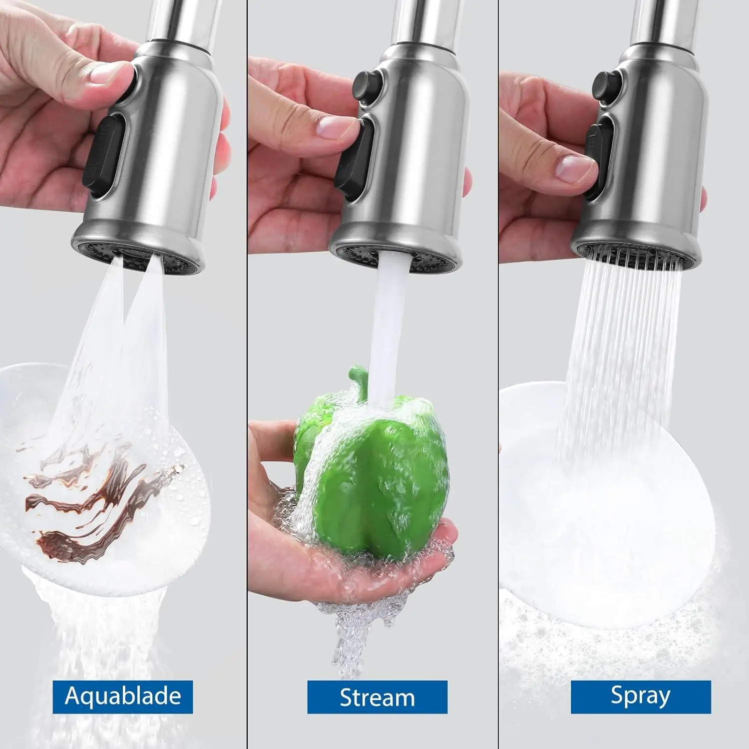 【Three Flow Modes】The replcement faucet includes 3 water flow modes: Stream, , and Aquablade( which uses a flow to flush debris). The 3 modes can be easily switched with just 2 buttons