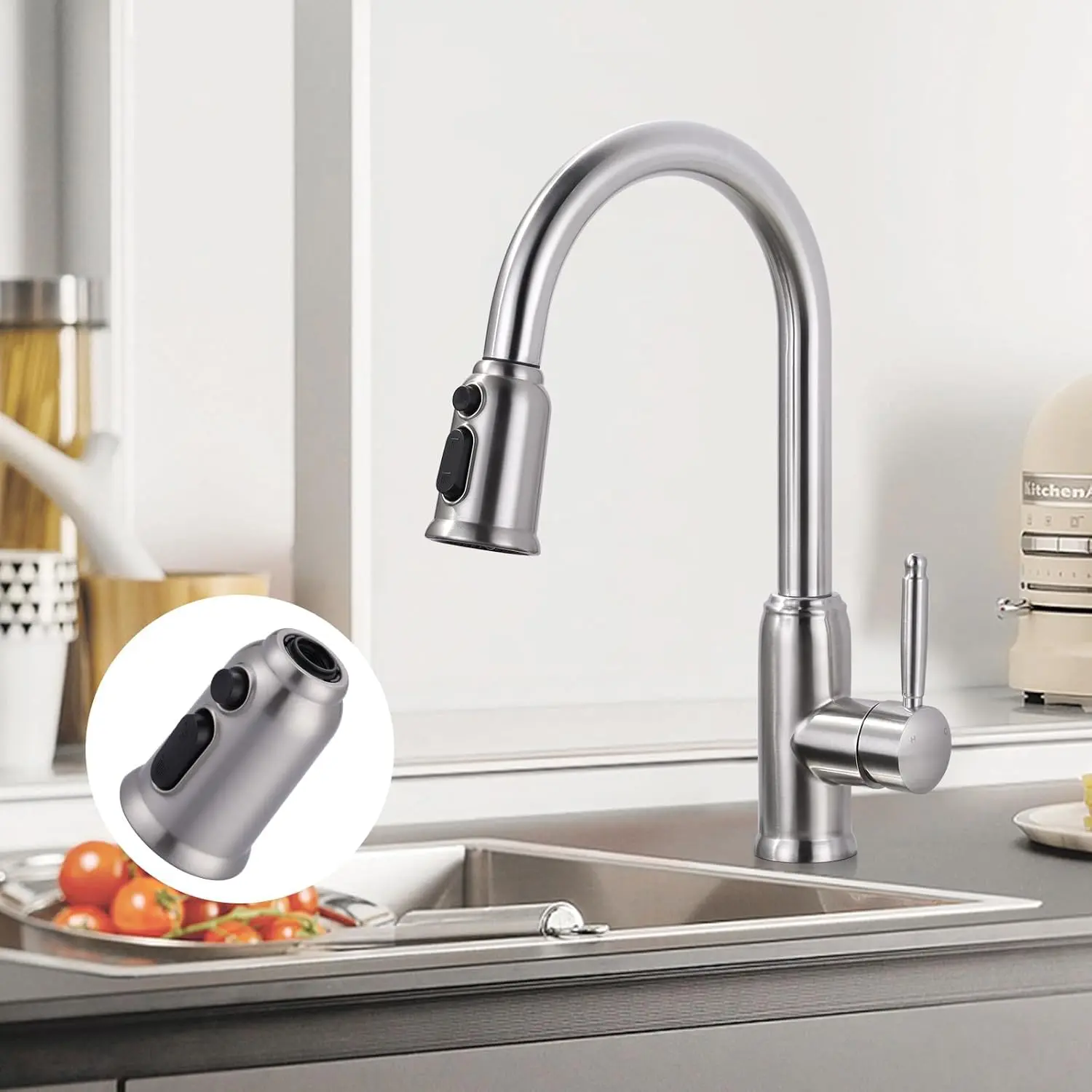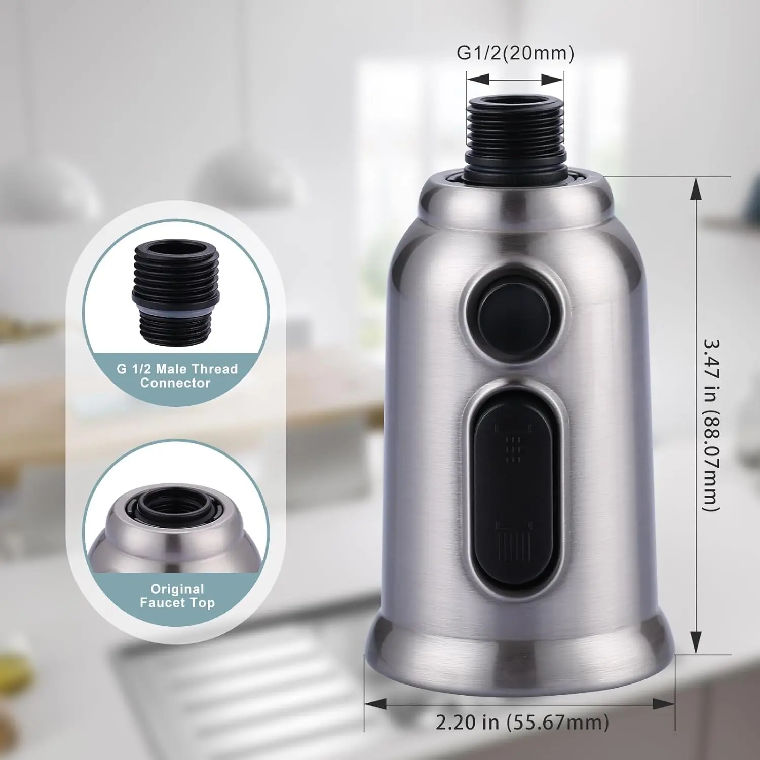 【Decent Faucet Match】The kitchen nozzle use elegant brushed nickle finished, match your facuet, high-grade appearance bring you a use experience