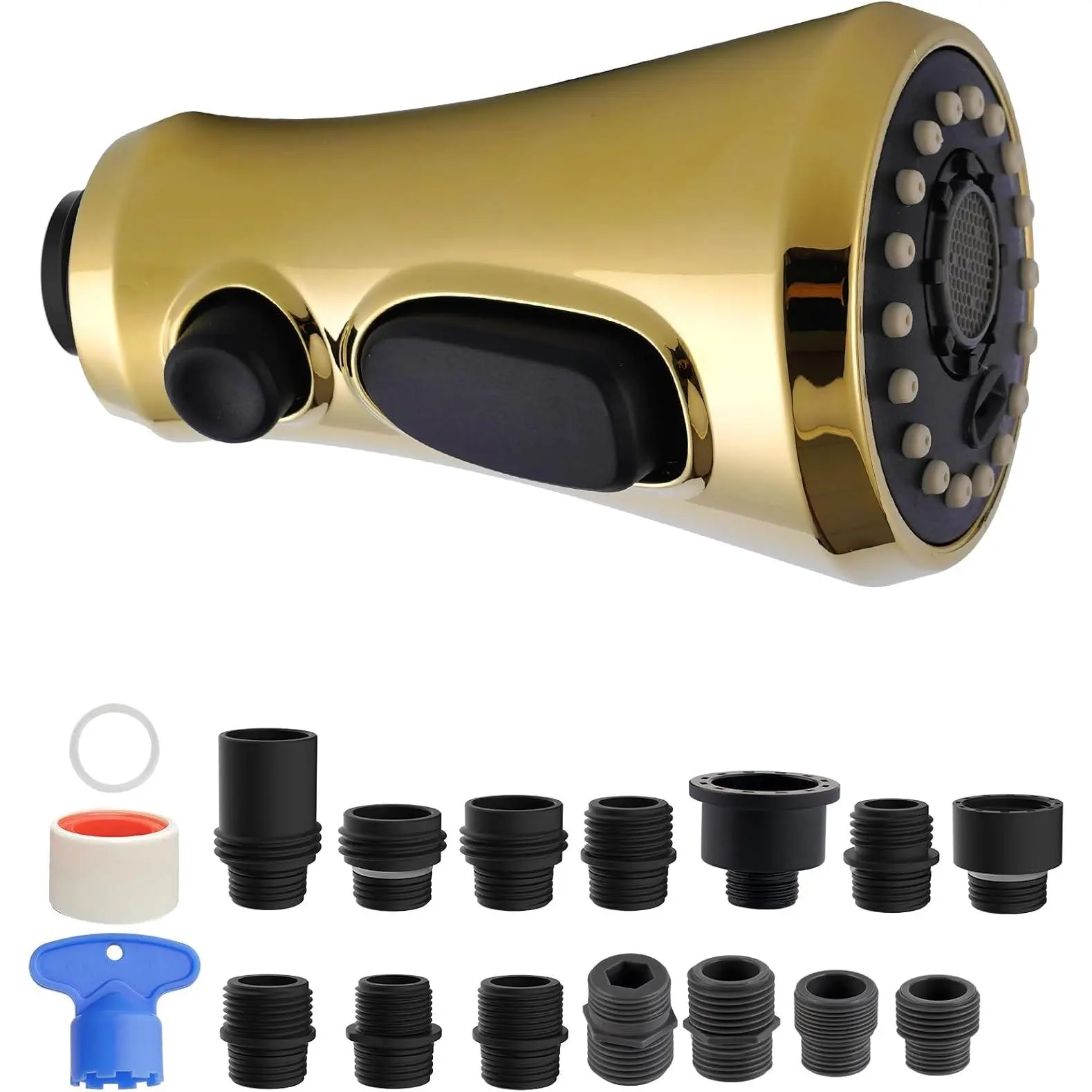 Three Function Kitchen Sink Sprayer: This kitchen faucet has 3 settings of stream, spray, and high rinsing; The high rinsing mode of replacement faucet sprayer is a very power mode, which can easily flush the debris with water; Stream and spray mode for daily using, the outlet modes as you like