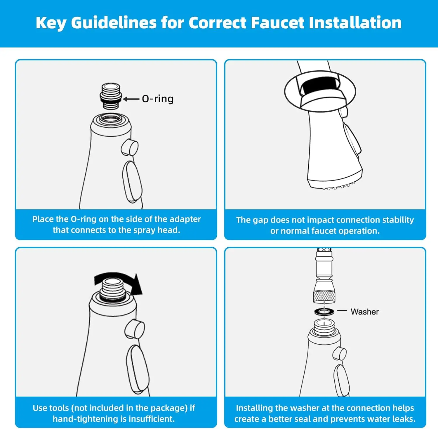 Easy to Install: It's very easy to install the kitchen faucet replacement , just unscrew the one and replace it with a one; Directly installed by hand without tools, everyone can install the pull down kitchen faucet sprayer replacement. Note: This product does not include a , please purchase cautiously if your faucet is