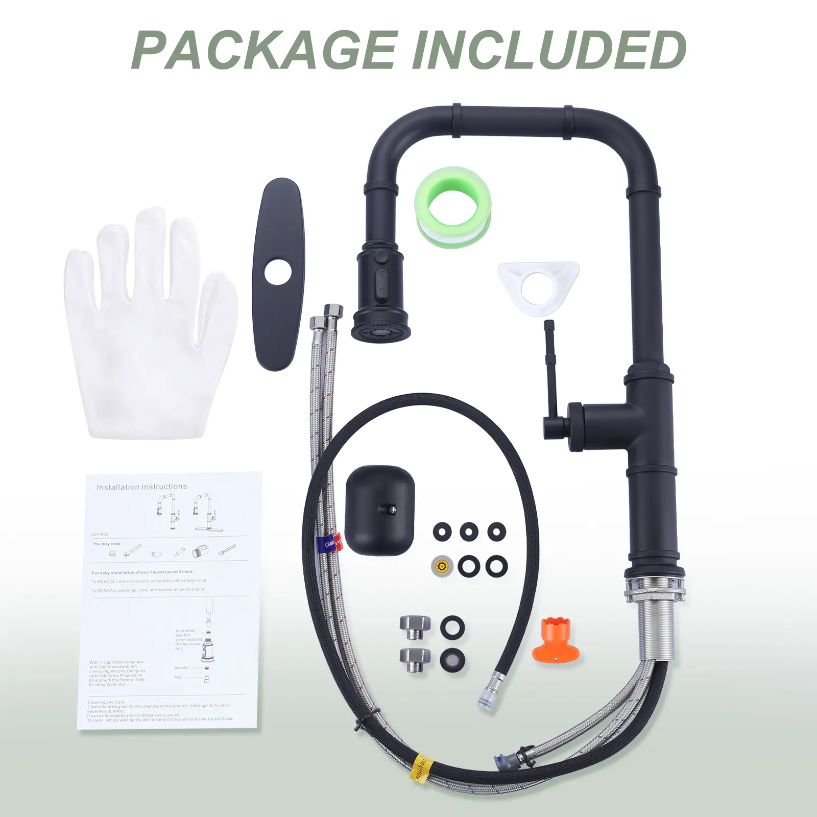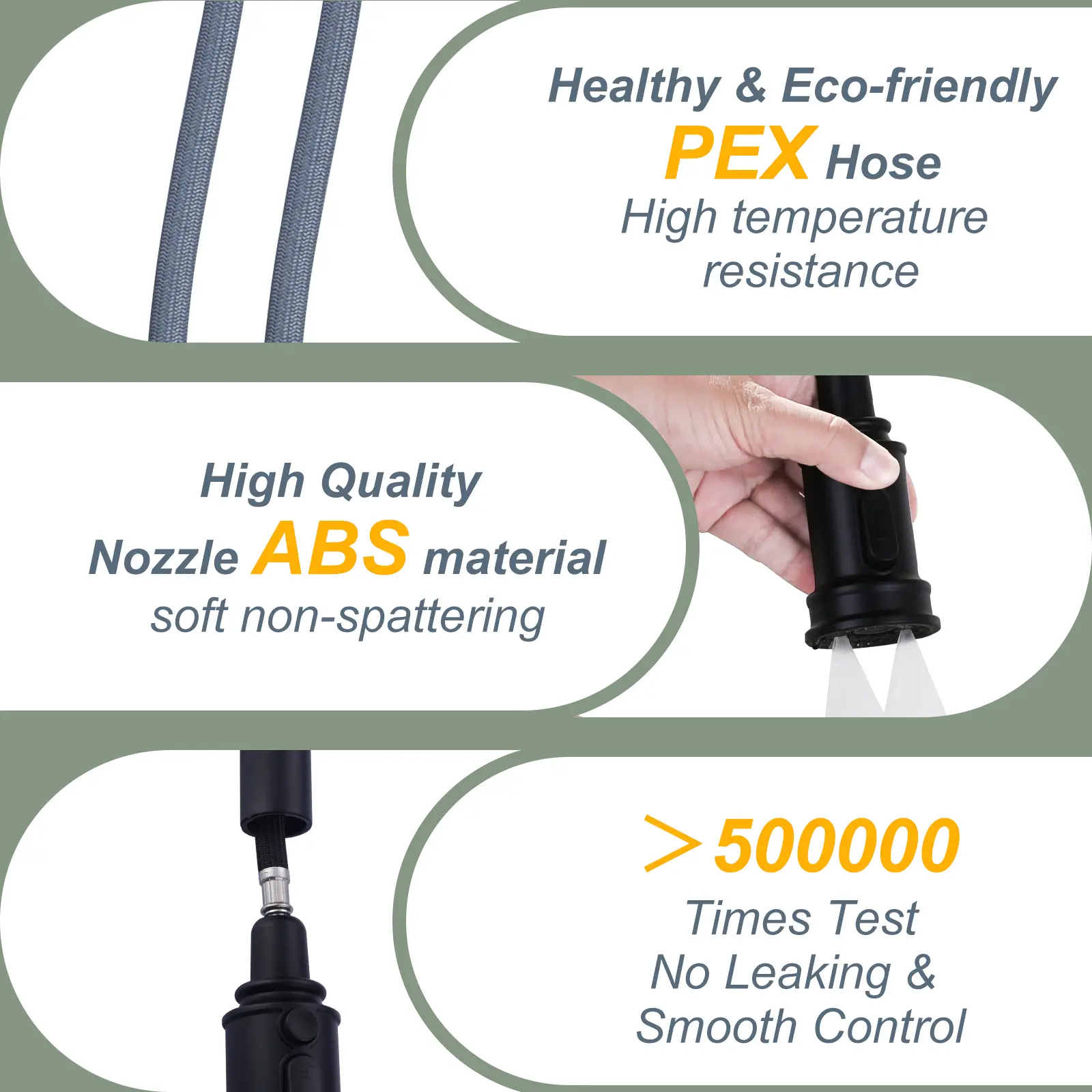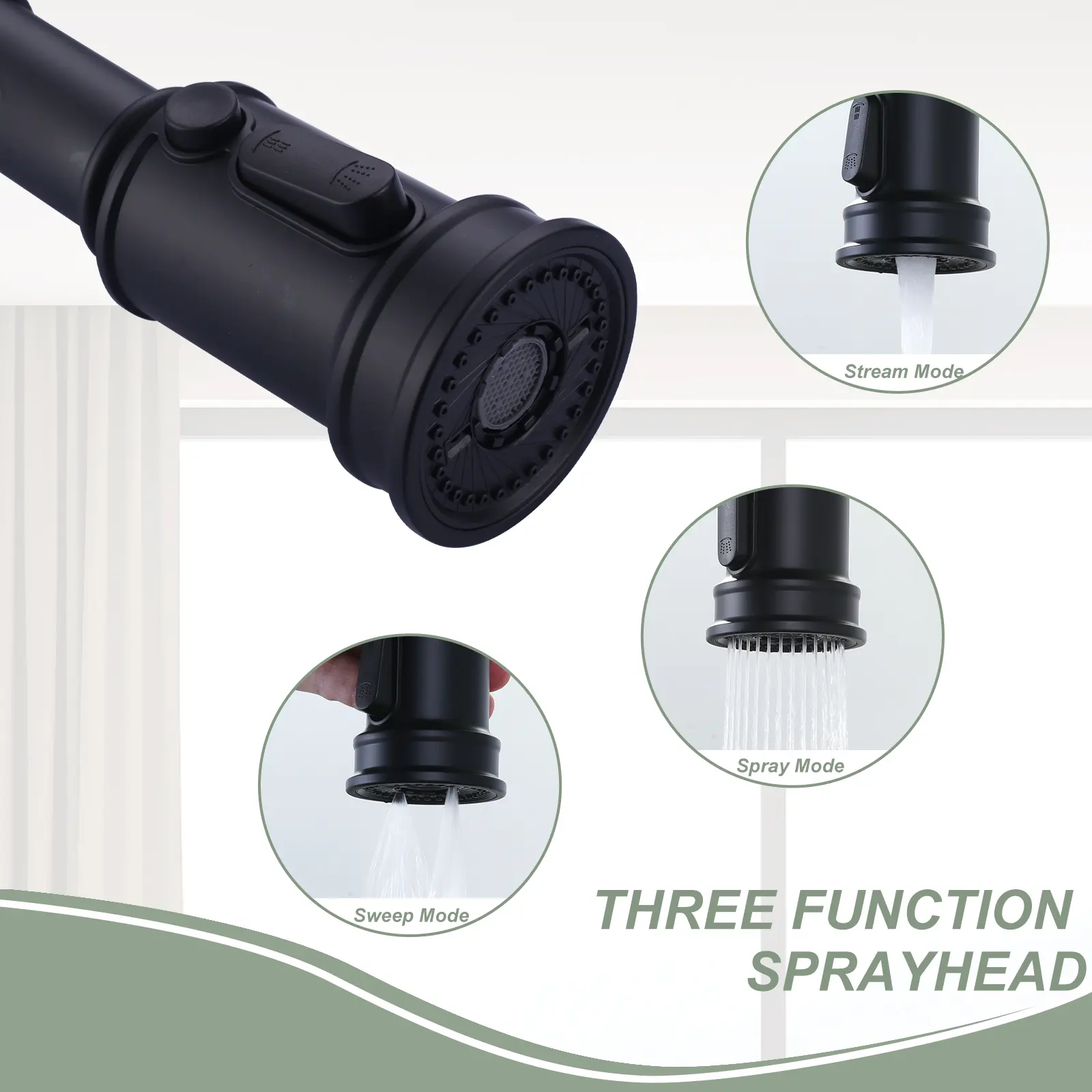 WOWOW Modern Brass 3-Function Single Handle Pull-Down Sprayer Kitchen Faucet with Deckplate in Matte Black