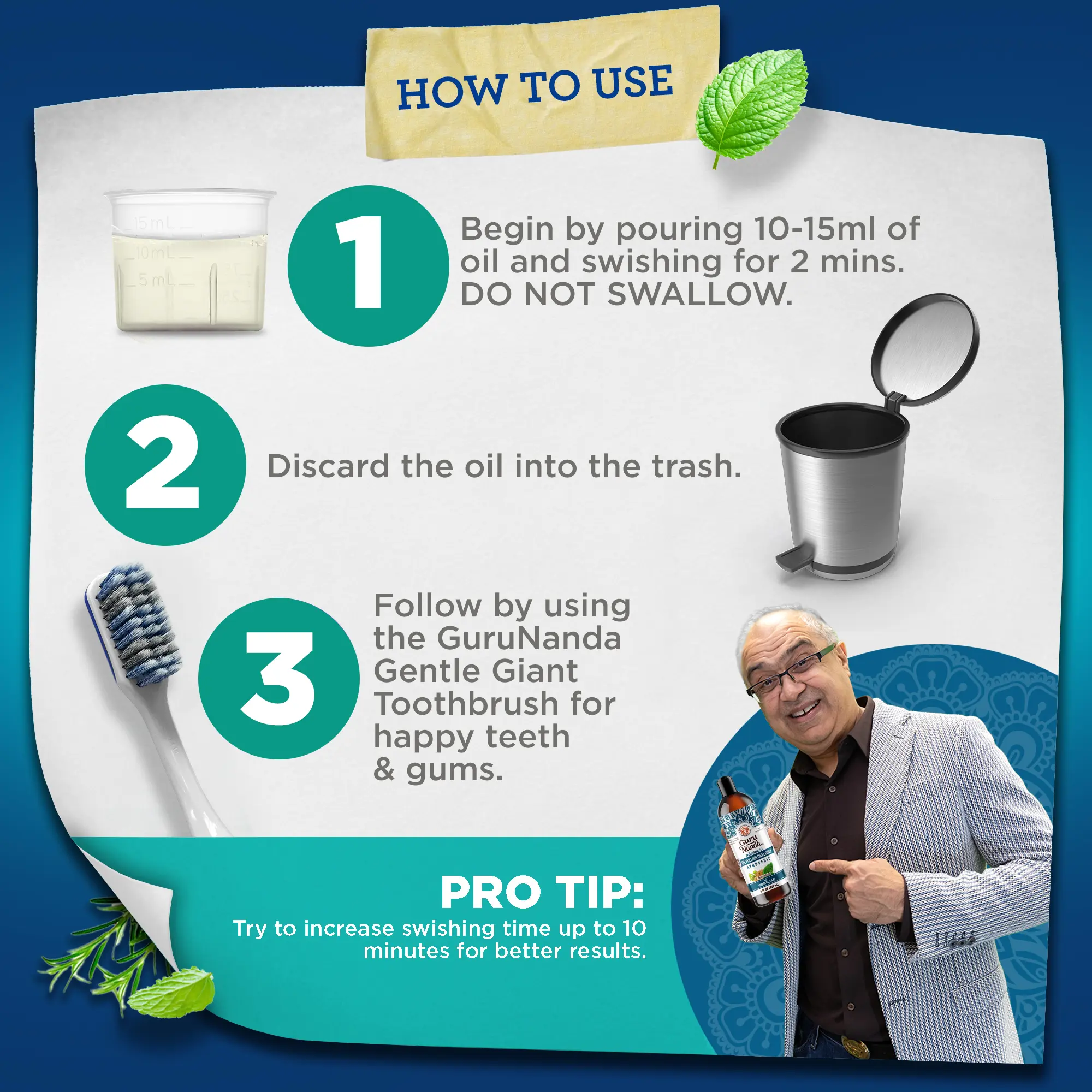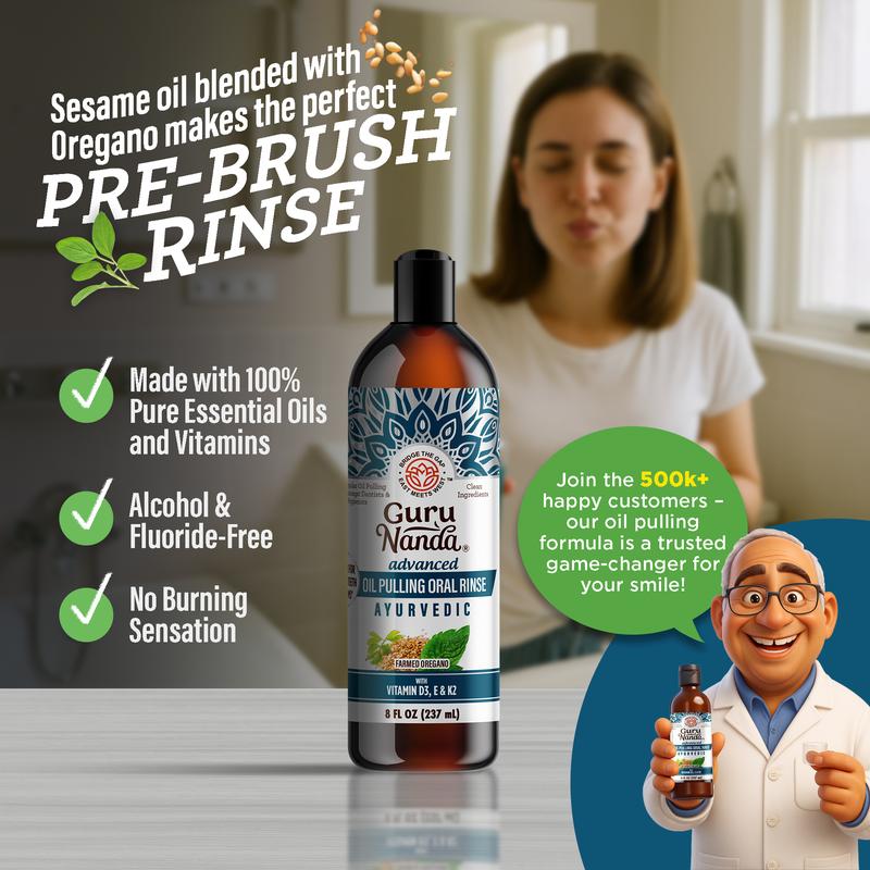 ·ALL NEW OIL PULLING EXPERIENCE - Crafted using the Ayurvedic principles of GuruNanda’s original pulling oil, this new advanced formula has been enriched with pure essential oils. Enjoy a highly pleasant and palatable oil-pulling experience with refreshing flavors of clove, cardamom, and mint.