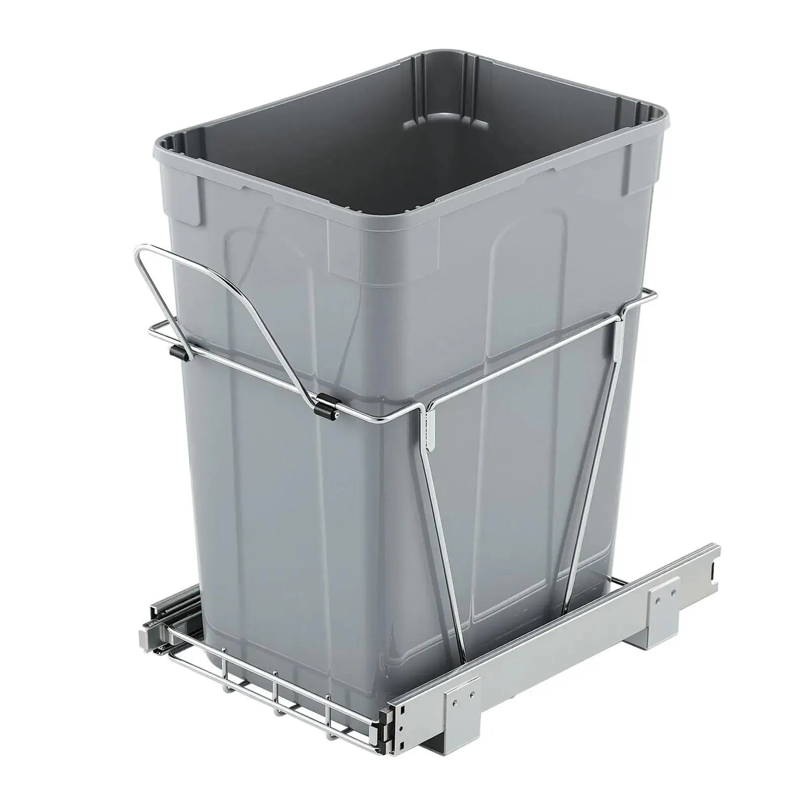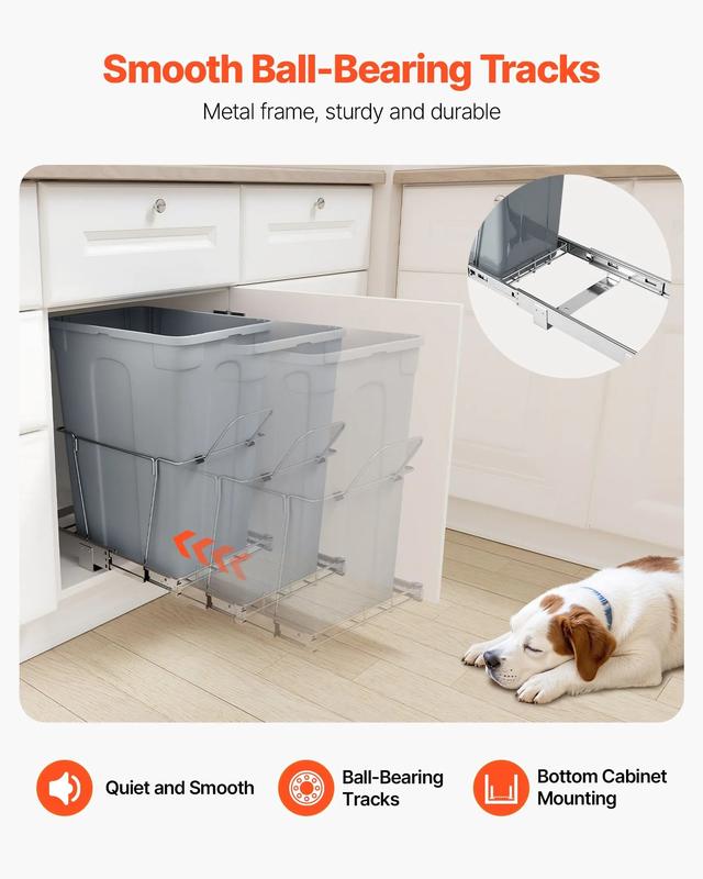 Crafted from high-quality smooth steel ball rails, the trash can slides smoothly and quietly. The iron bracket offers strong rust and corrosion resistance, ensuring durability. It's easy to wipe clean for long-lasting use.
