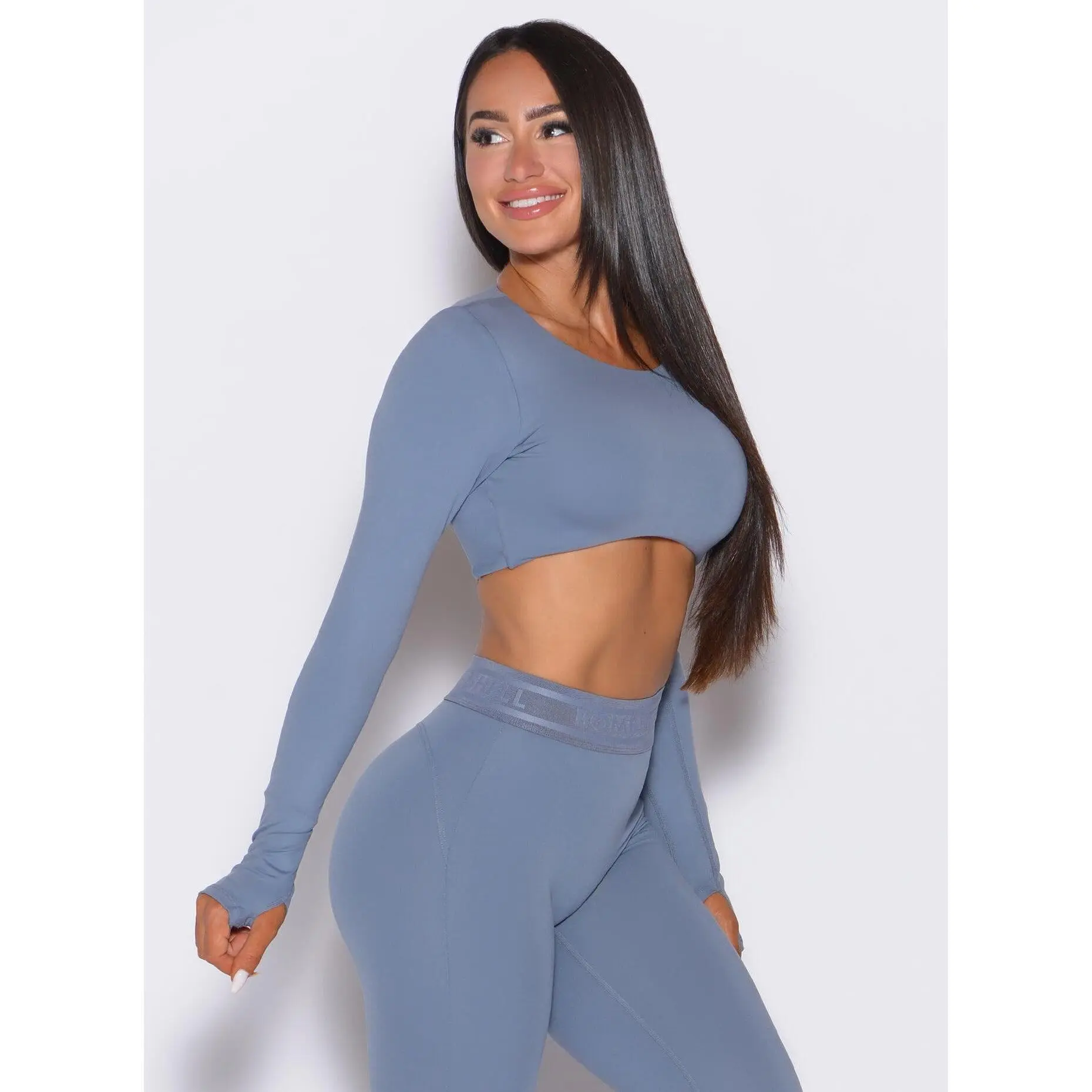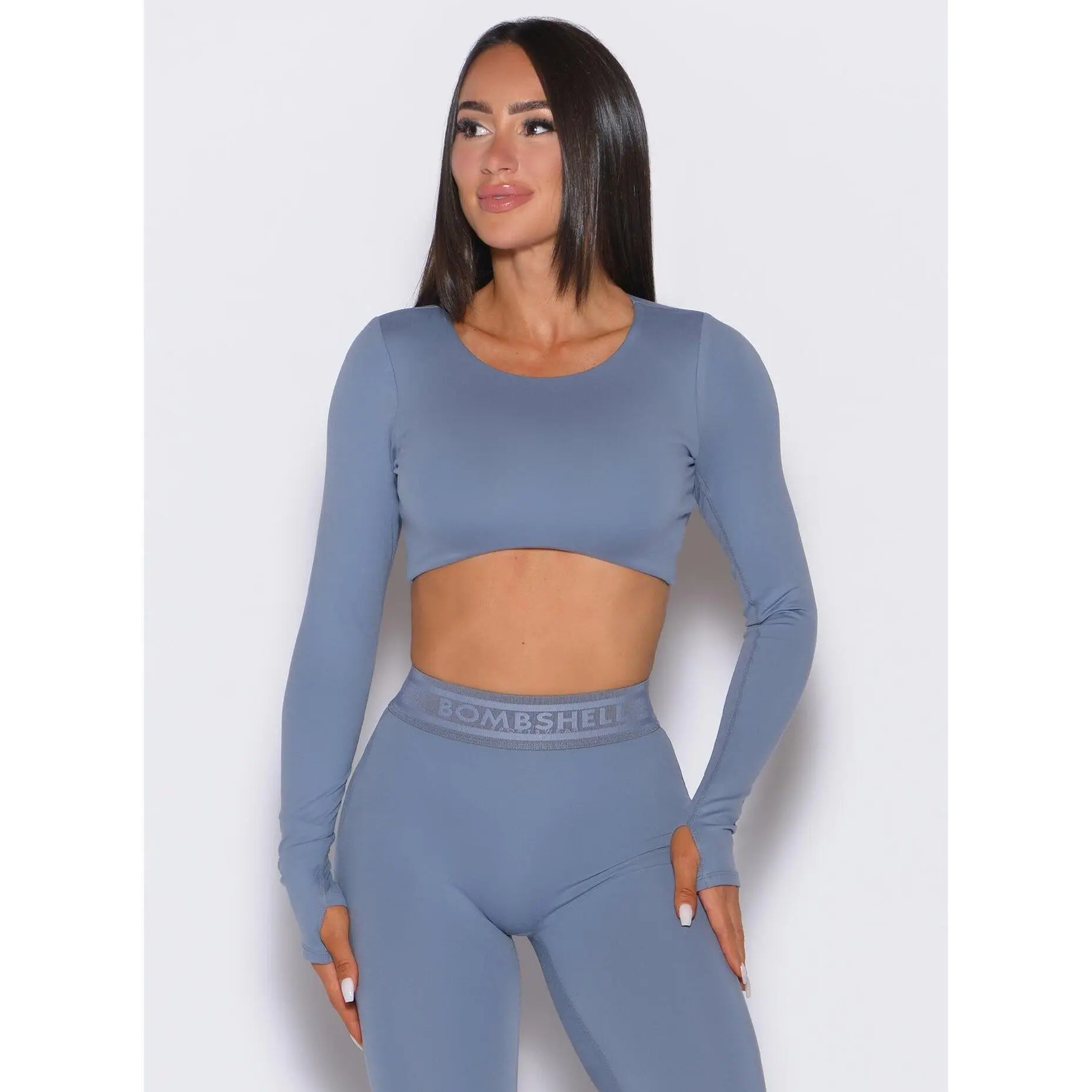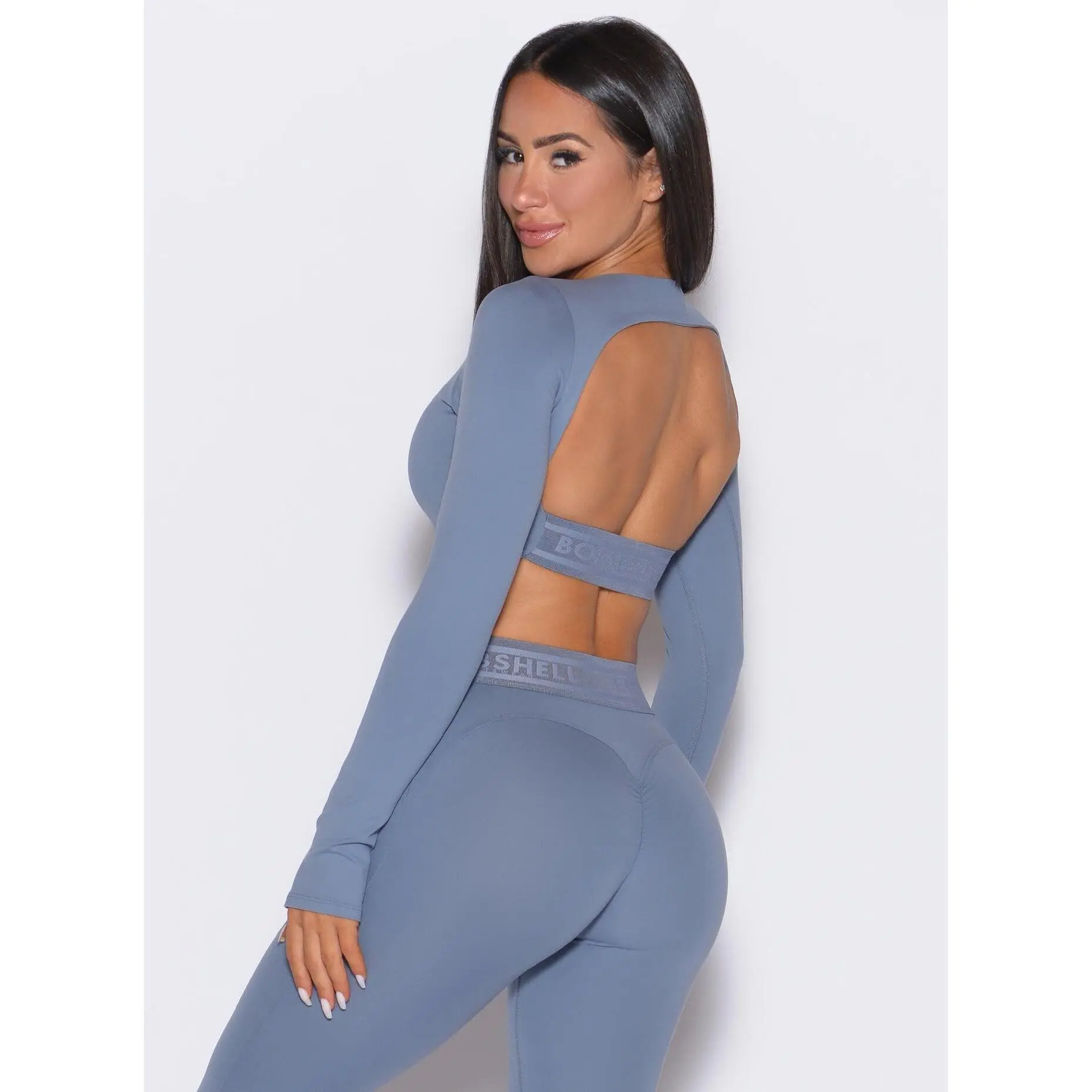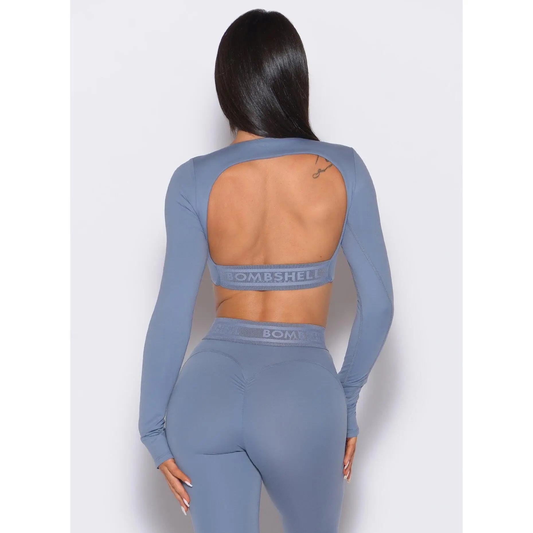 The Bombshell Active Pullover in Flinstone is where sleek design meets functional performance. Crafted as a dark gray pullover, it features a built-in bra with removable padding for hidden support. A scoop neckline and cropped length create a flattering silhouette, while the open back adds a bold finish. Double layered at the front and back for structure, and single layered sleeves with thumbholes for ease, this fit pullover delivers comfort that holds in place. Versatile and stylish, this crop scoop neck top transitions effortlessly from workouts to daily wear with Bombshell’s signature edge.