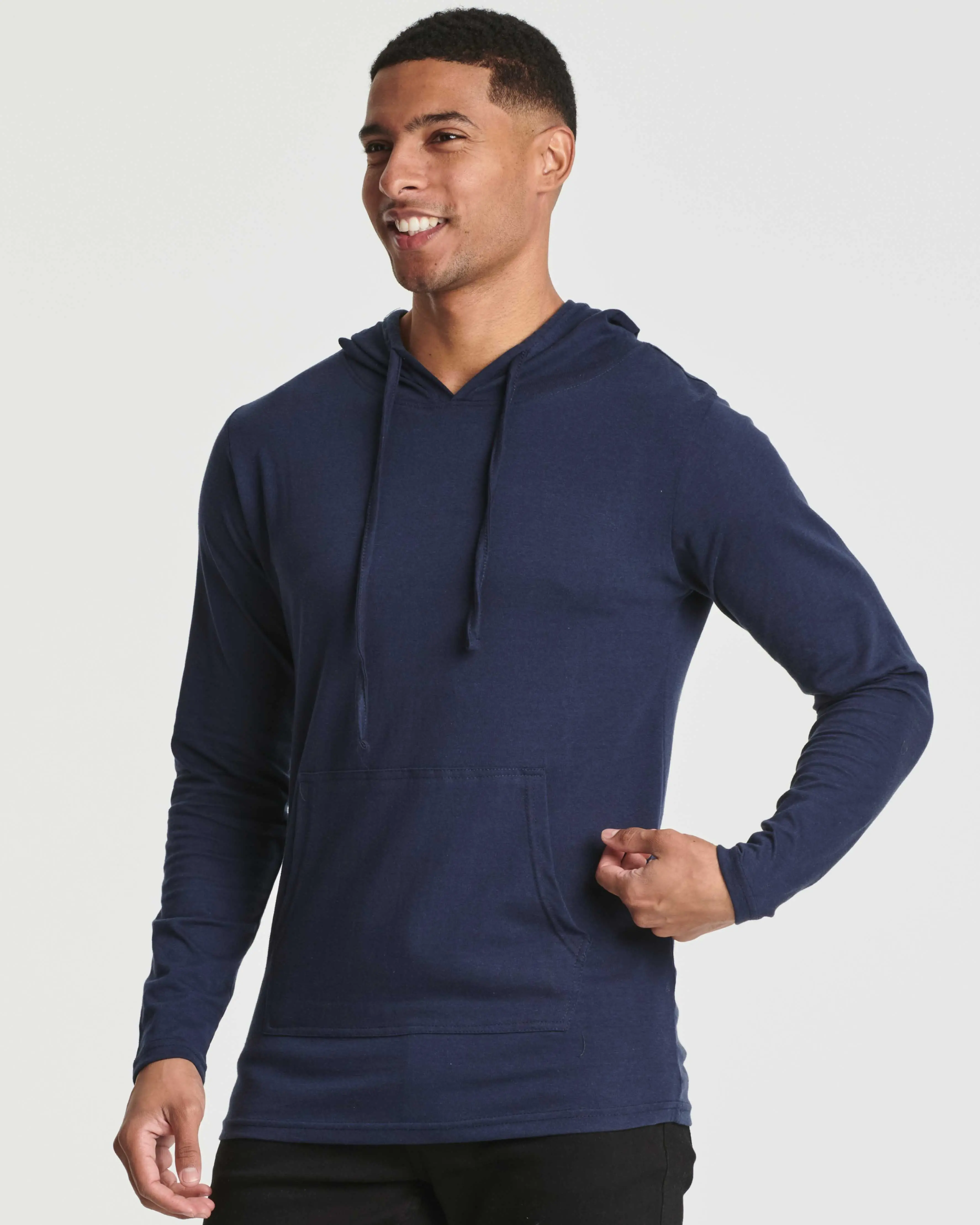 Our men's hoodies are a casual wardrobe staple that you are going to love to live in. Featuring a tag free collar, super soft cotton and reinforced pocket, the Real Essentials Men's Hoodie are designed for comfort and made to last. Dual Defense Technology is included with each pair, helping wick away moisture and provide built in odor protection.