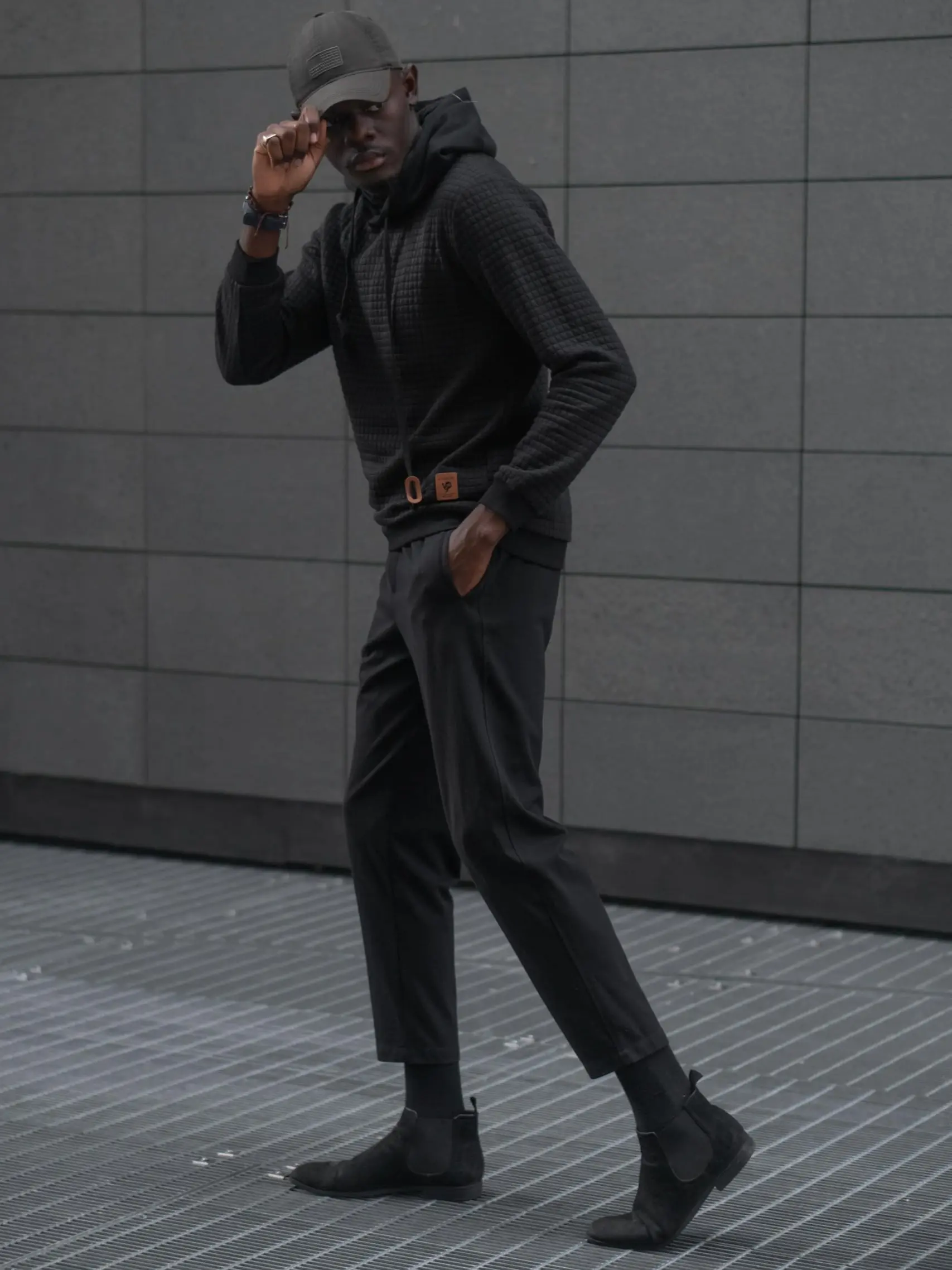This is an amazing hoodie. Thin and light but excellent quality fabric and leather tips on the straps are a nice touch.