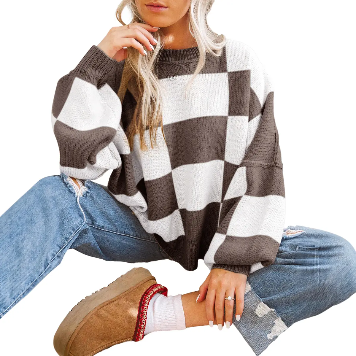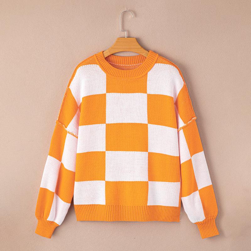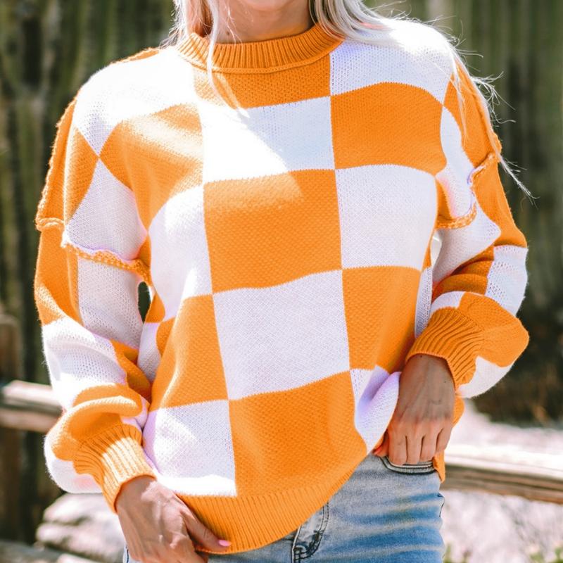 ·FEATURE:Checkered Sweater Women 2025 is featured soft and stretchy knit fabric, skin-friendly, loose fit, This stylish women's pullover sweaters will become your new favorite cozy slouchy sweater