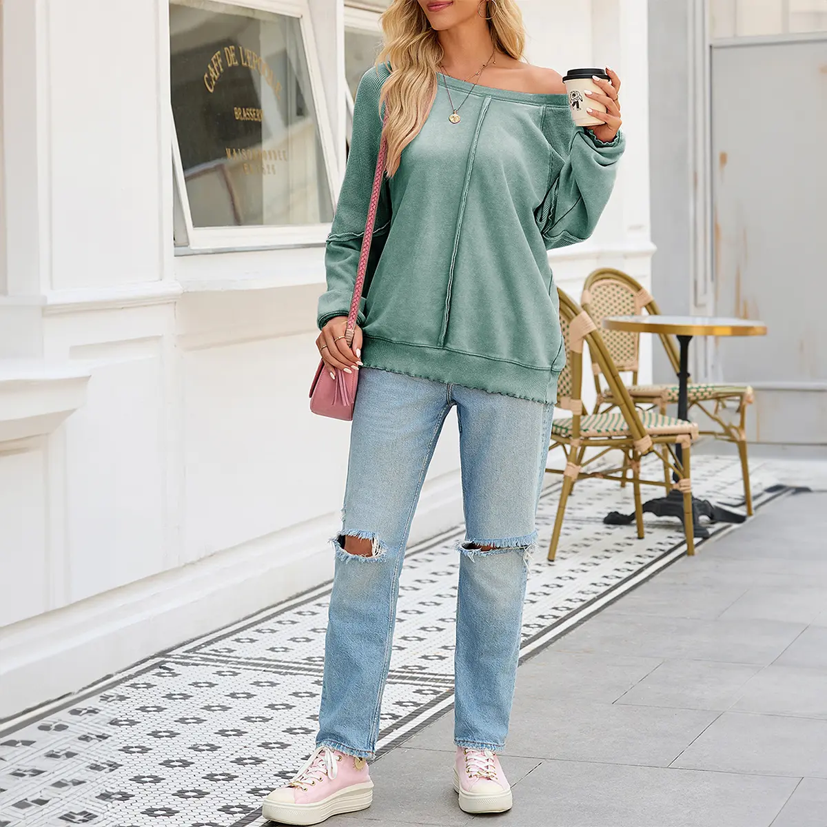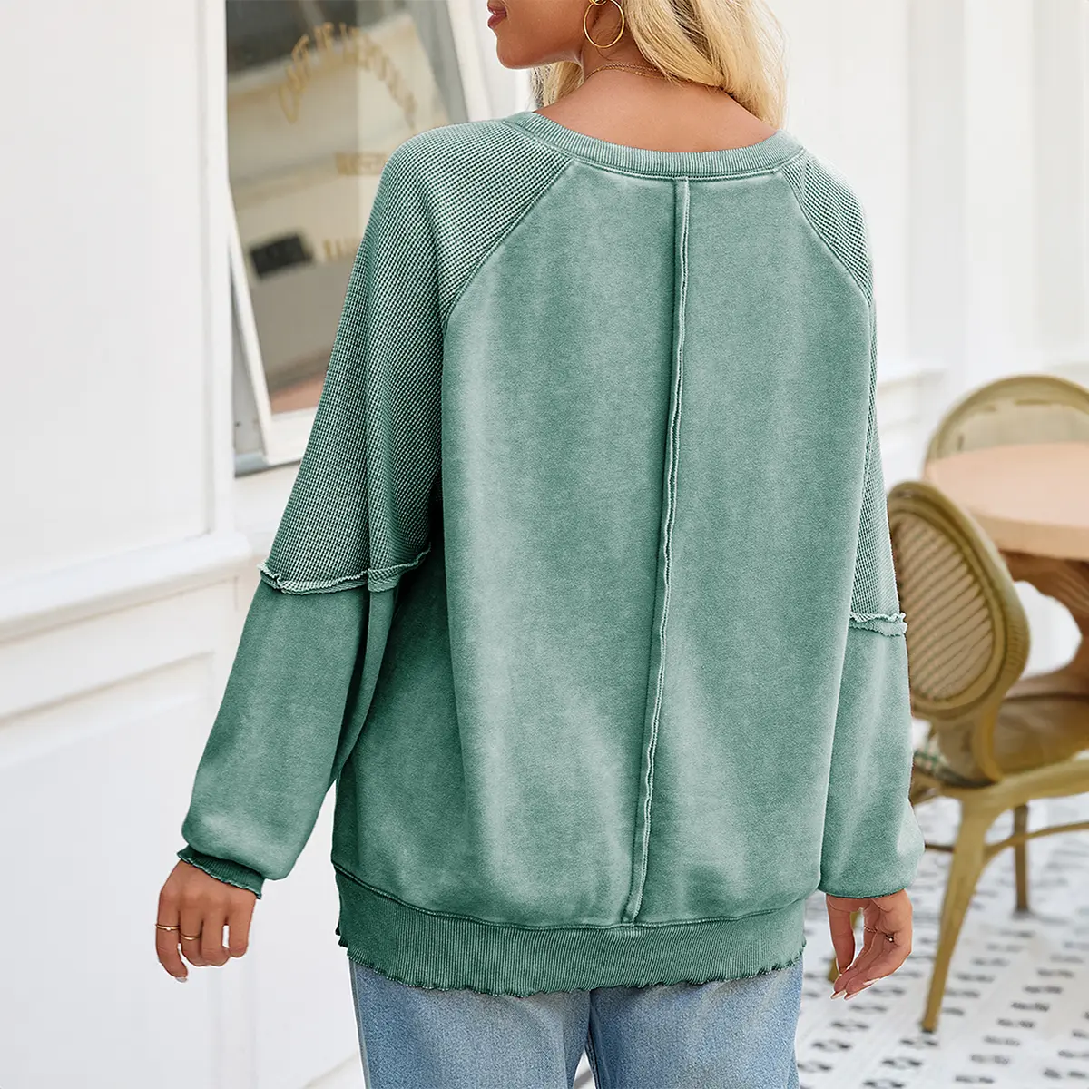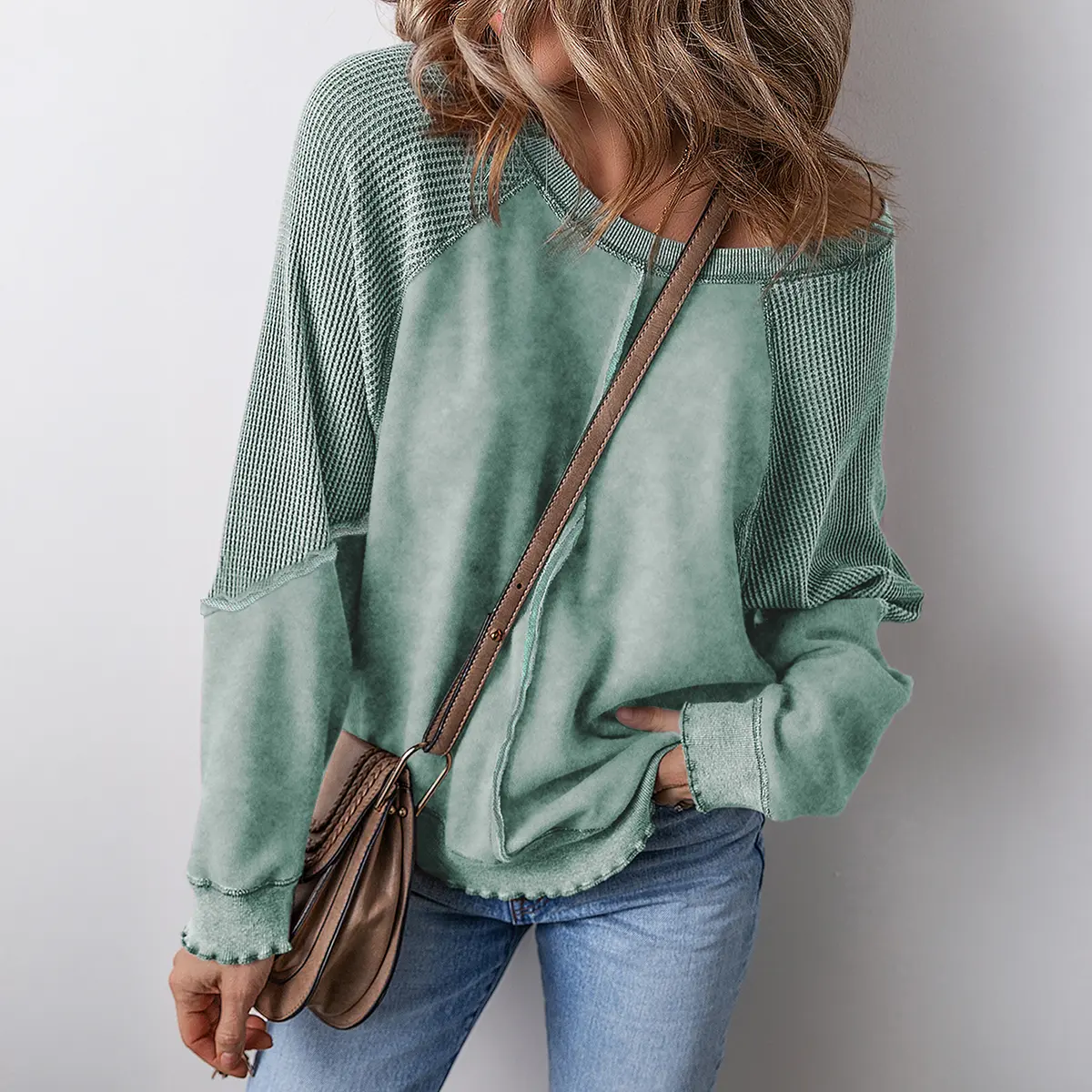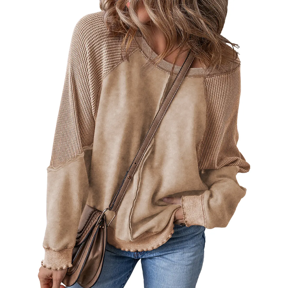 • On-trend crew neck, long sleeves with wavy cuffs, and unique waffle patchwork design. Loose fit + exposed seam details add a casual edge—ideal for 2024 fall outfits. Oversized silhouette flatters all body types, blending fashion and comfort.