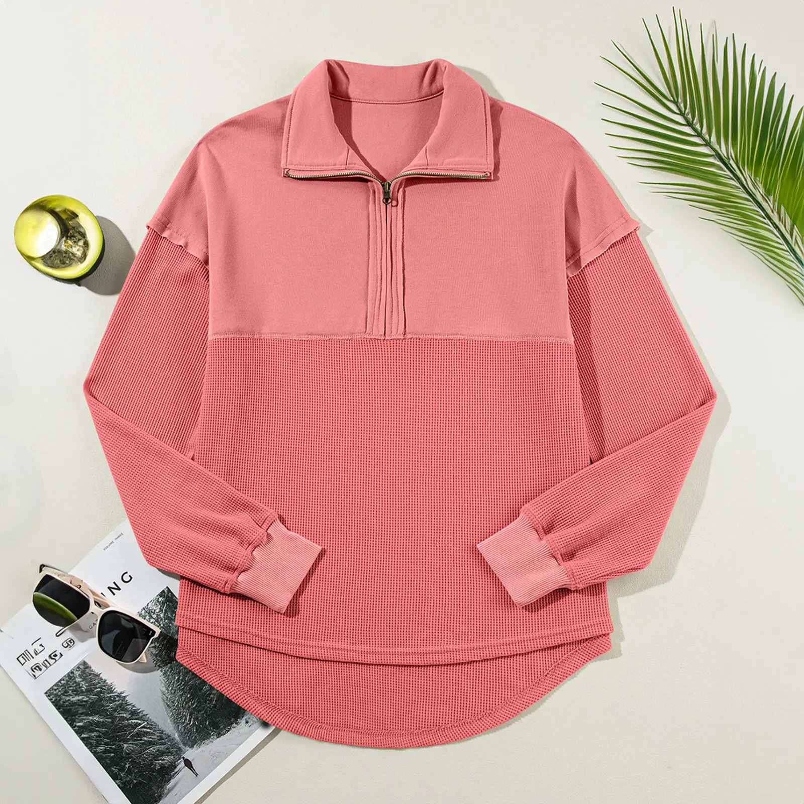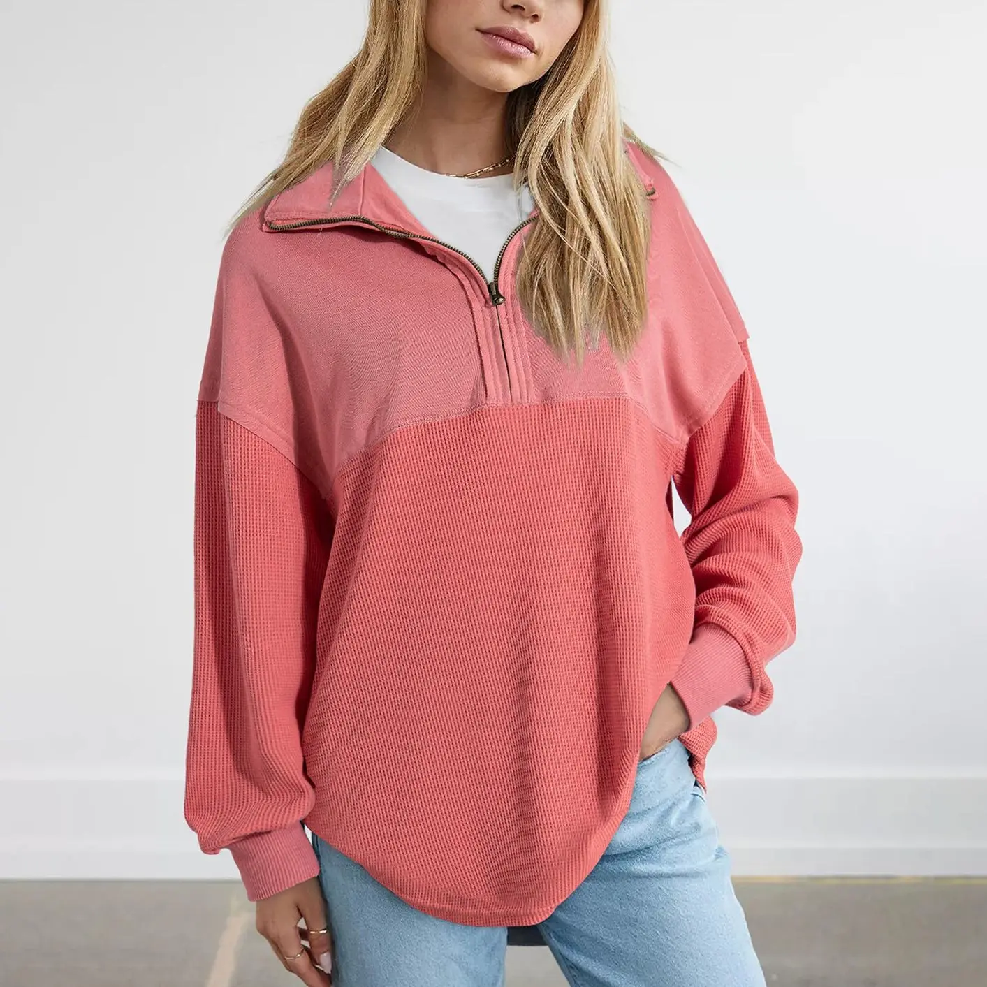 🌟 Shewin 2026 Spring Women's Cozy Oversized Waffle Knit Half-Zip Pullover 🌟
