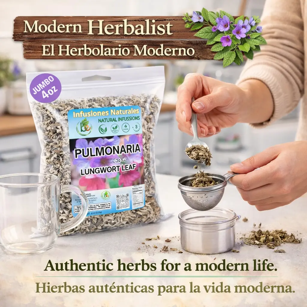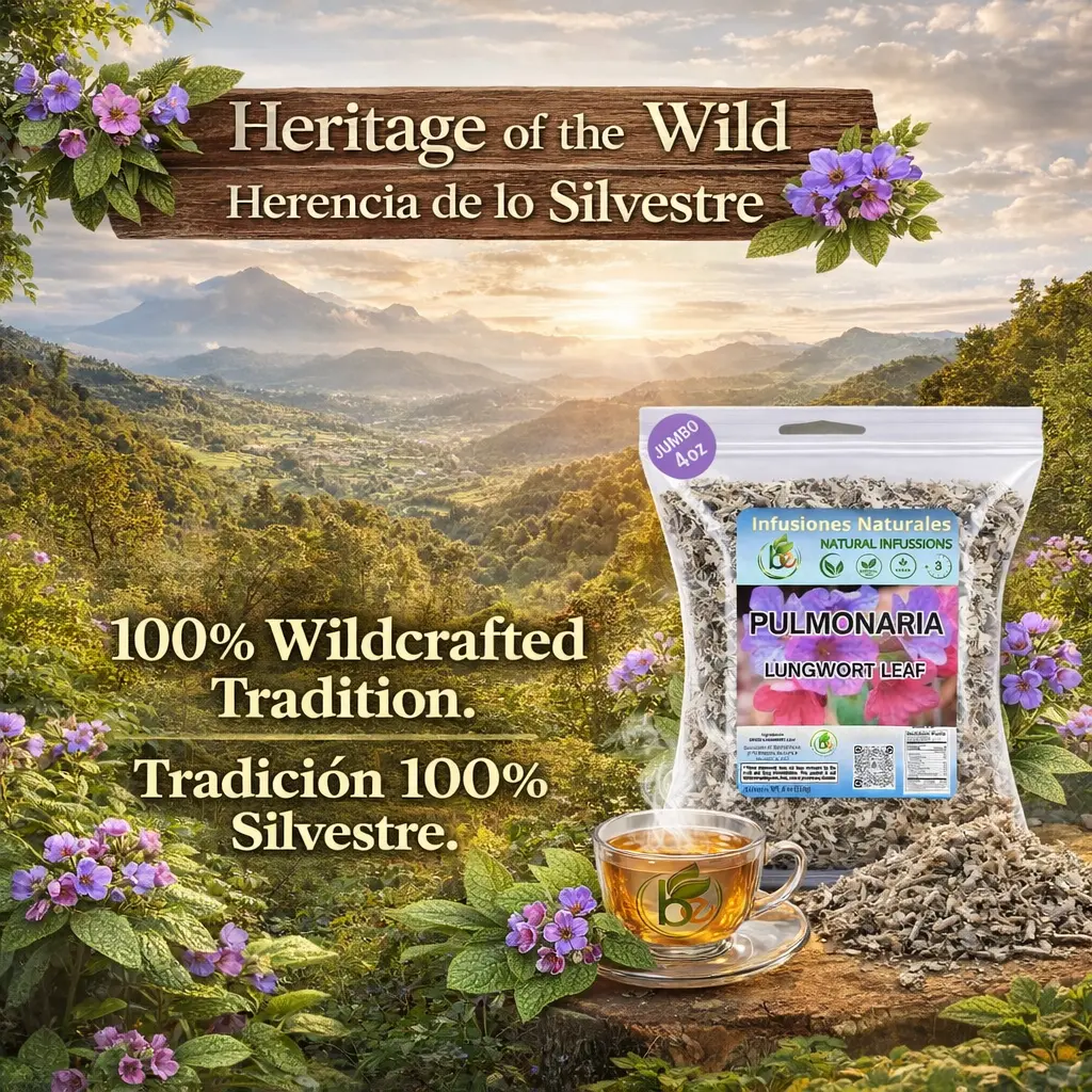 Pulmonaria Herbal Tea offers a 4 oz (113g) blend of 100% natural lungwort herb. This wildcrafted tea originates from Mexico, ensuring a unique taste experience. Perfect for those seeking a vegan, non-GMO, and gluten-free option. Each leaf is carefully selected for its natural properties.