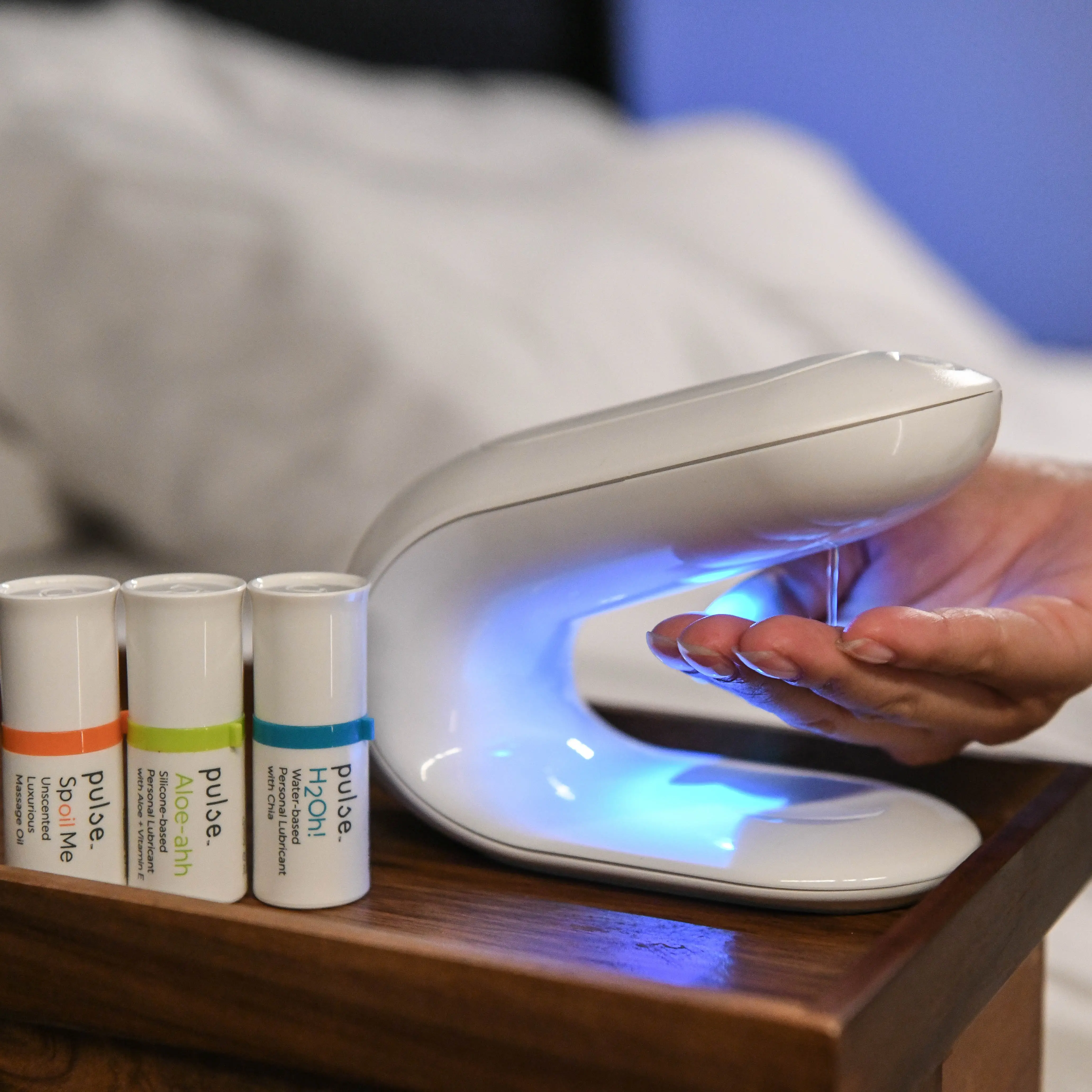 Utilizing mess-free, smart technology for a spill-proof & contamination-free experience, Pulse effortlessly dispenses warmed lube and massage oils that are hypoallergenic, hydrating, relieve discomfort, and free of fragrance, glycerin, parabens, and harsh preservatives.