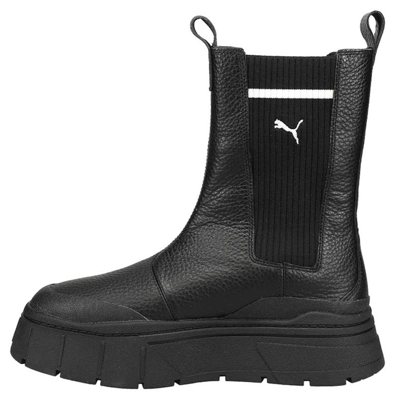 5. PUMA Womens Mayze Stack Round Toe Pull On Platform Chelsea Casual Boots Mid Calf Low Heel 1-2" - Black