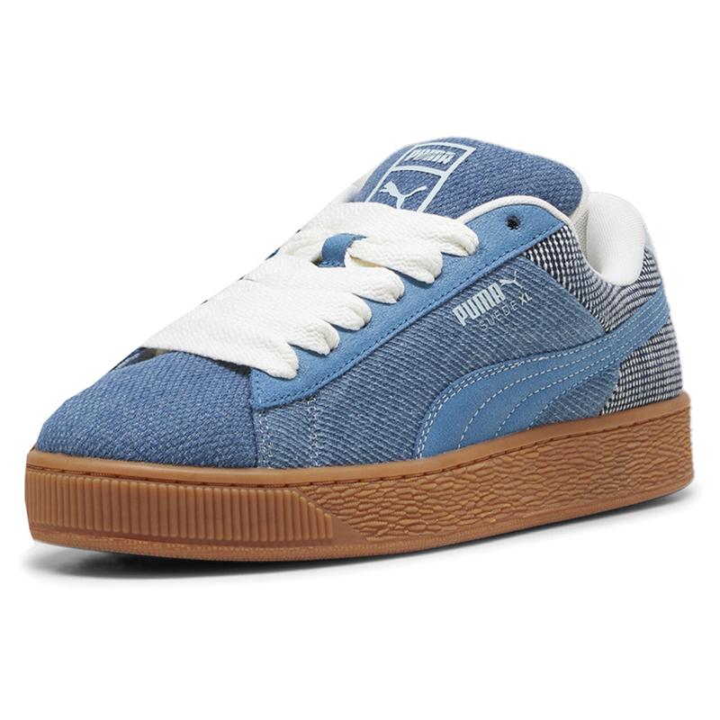 The Suede hit the scene in 1968 and has been changing the game ever since. It's been worn by icons of every generation, and it''s stayed classic through it all. The Suede XL retains the Suede's iconic DNA, but gives it a twist with an exaggerated padded collar and tongue, plus a chunkier sole. This denim version features a textile upper and bleached branding details for a premium look and feel.