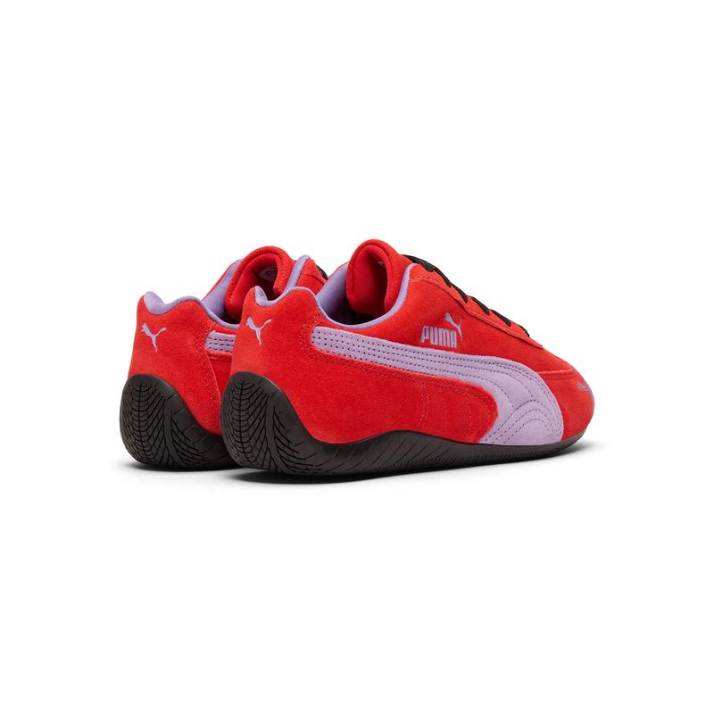 An icon of racing culture, the PUMA Speedcat has been synonymous with speed, precision, and unparalleled performance for over 25 years. It originated as a fireproof Formula 1® footwear style, but over the decades it found itself on a new circuit – transcending the tracks of Monaco for the streets of global fashion capitals. Wrapped in soft suede and premium leather, this silhouette is reissued in its original red and black colorways with a new PUMA Cat Logo at the front.