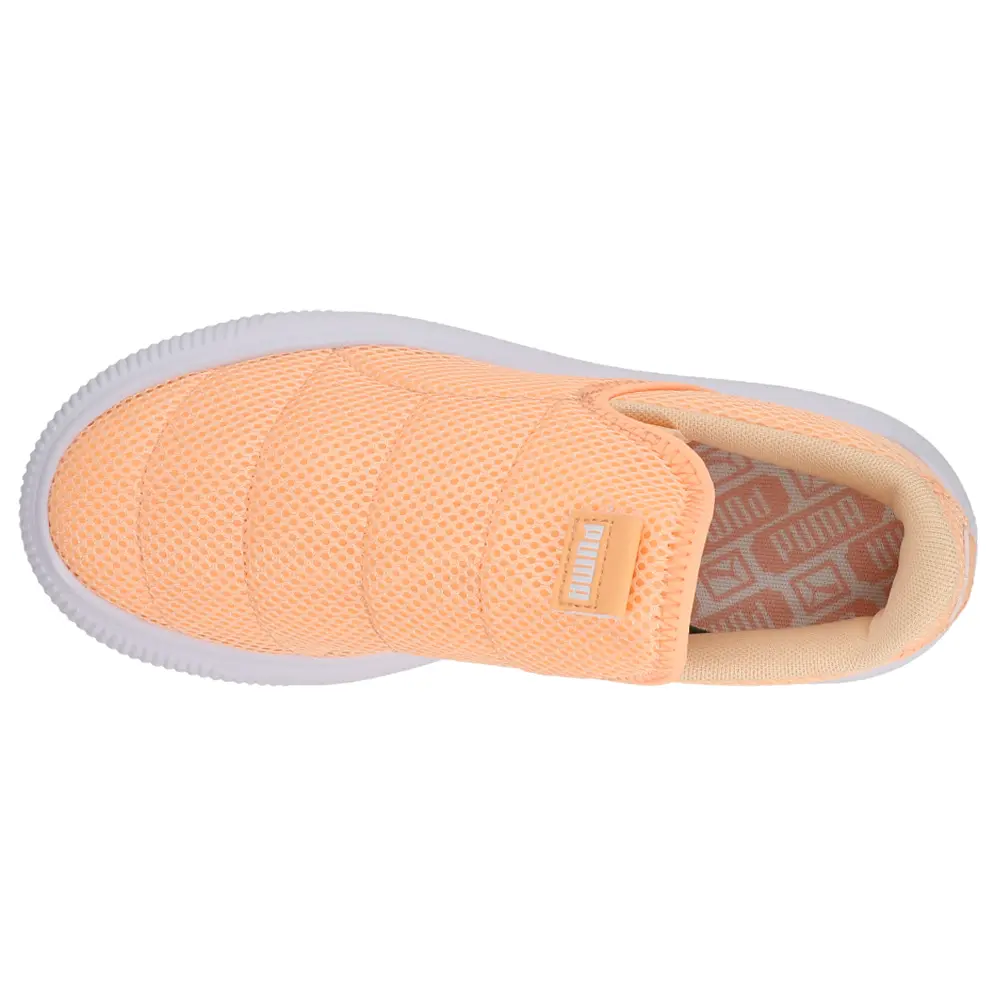 Meet the Suede family's sassy sister. With exaggerated proportions and a wrapped stacked midsole, the Puma Suede Mayu is the perfect cool, comfy sneaker for street-smart fashionistas with an irreverent sense of fun...and a little dose of cheeky attitude. Like a breath of fresh air, the Slip-on Mono version combines a mesh upper and chunky IMEVA midsole for a feather-light cozy feel.