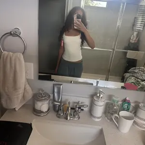 This tank top is basic but cute, it’s really comfortable though I you’re able to adjust the straps which is good. It’s full length and you can make it a bit cropped if you have a longer torso but it’s mainly full length which I’ve been looking for. Before I forget to mention, some people think that this top has boob pads, but it doesn’t, I wish it did but you can also wear a strapless bra which I have on because personally I don’t like how it looks with the tops strap and then the bras strap on top of the other. I definitely recommend to get if you’re looking so something basic and comfy!!
