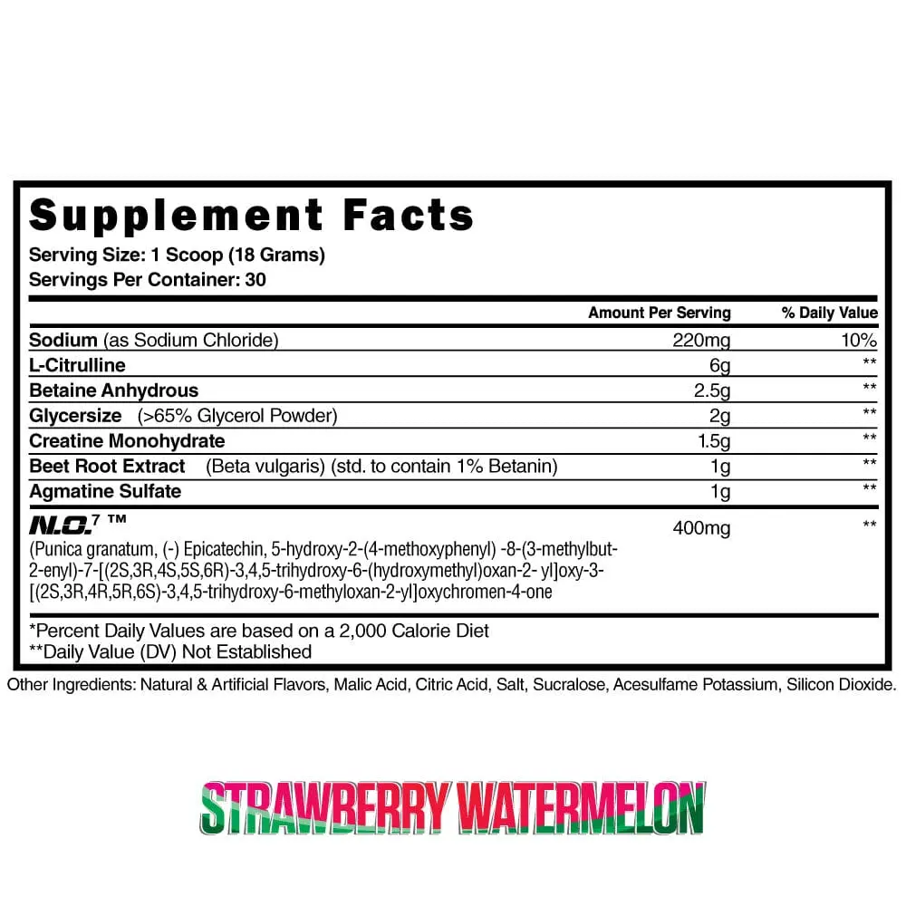 IngredientsL-Citrulline,Agmatine Sulfate,Betaine Anhydrous,Creatine Monohydrate,Glycerol Powder