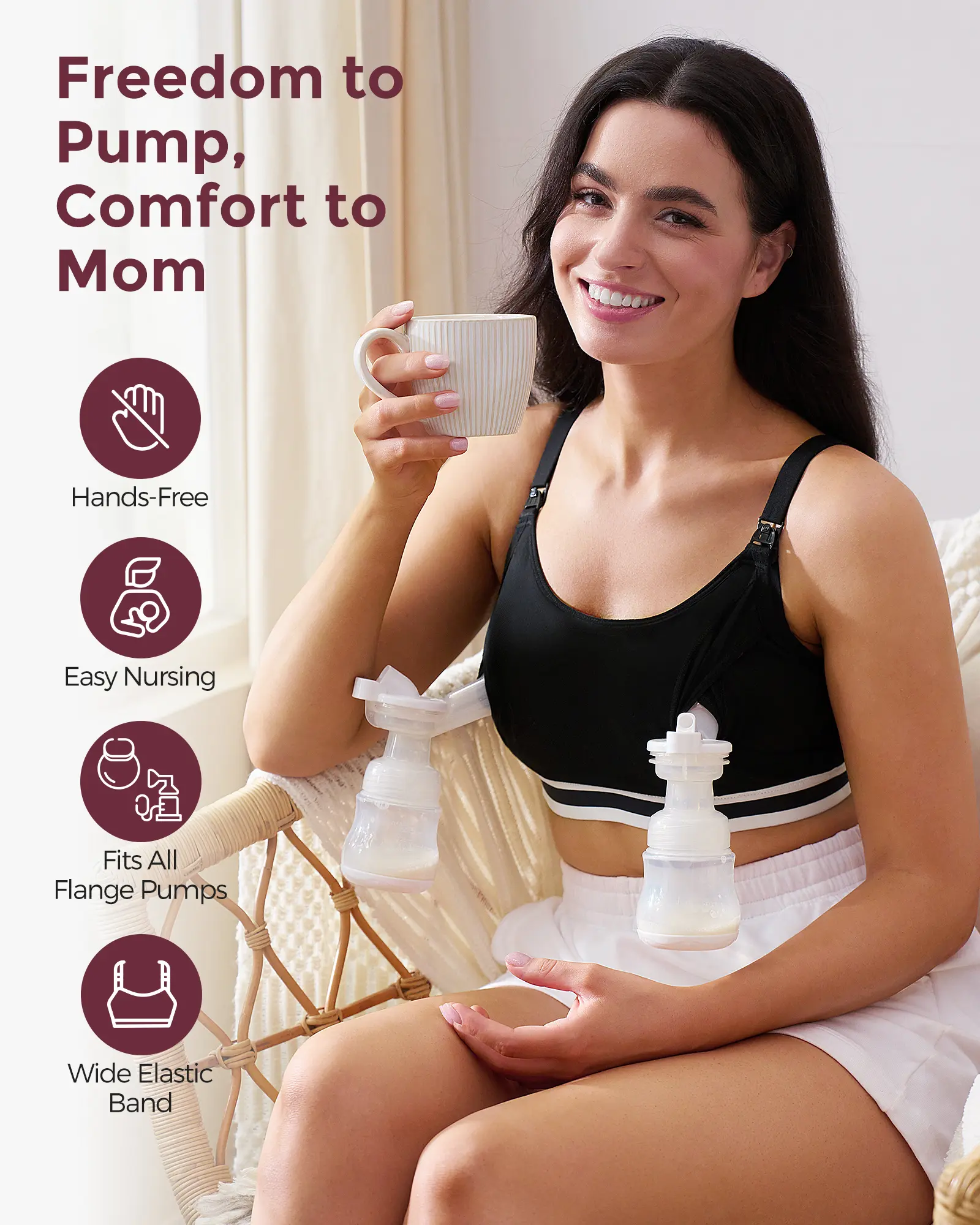 ·Pumping & Nursing in One: Combines pumping and nursing with easy one-step breastfeeding clips for quick, discreet feeding, allowing busy moms to switch tasks effortlessly without changing bras.