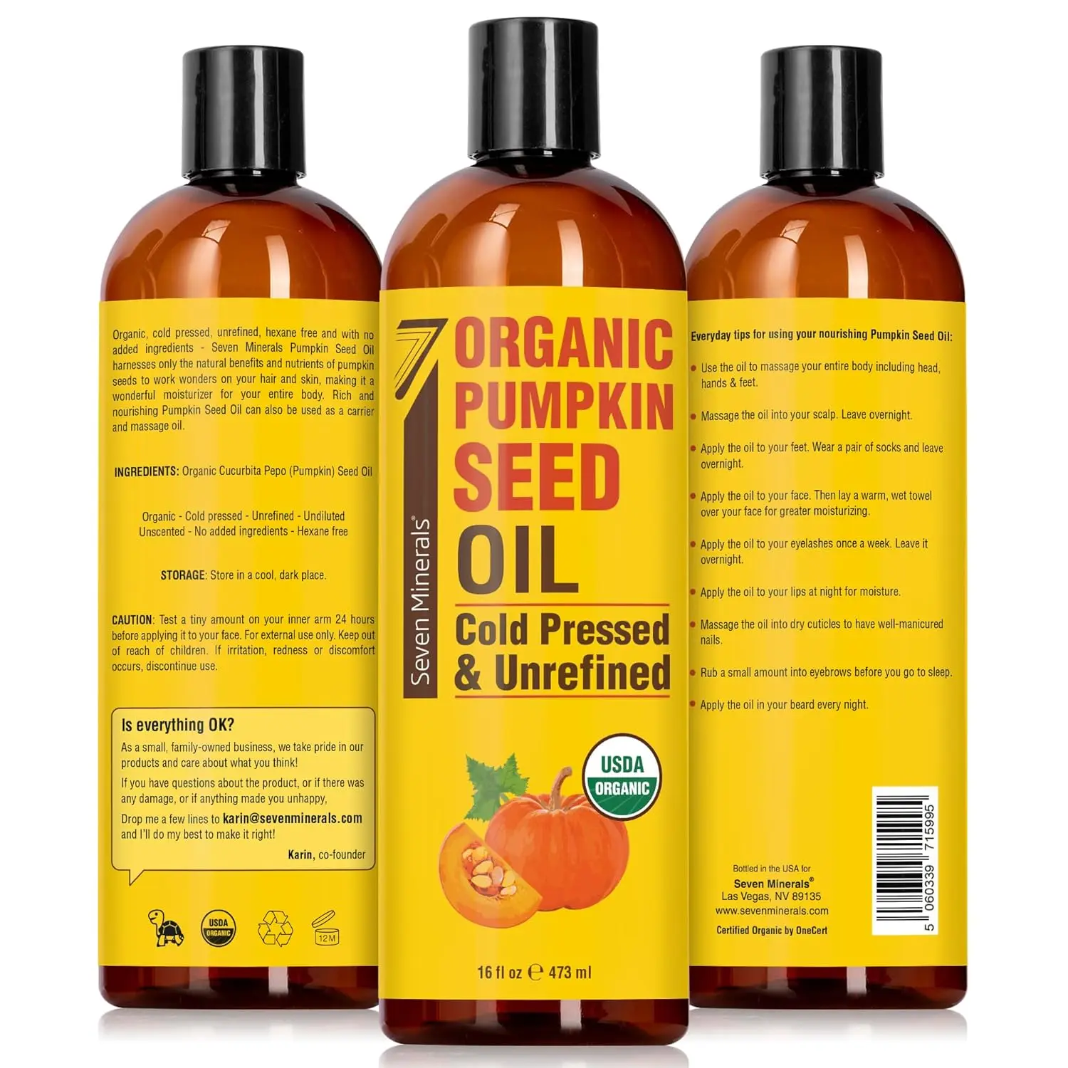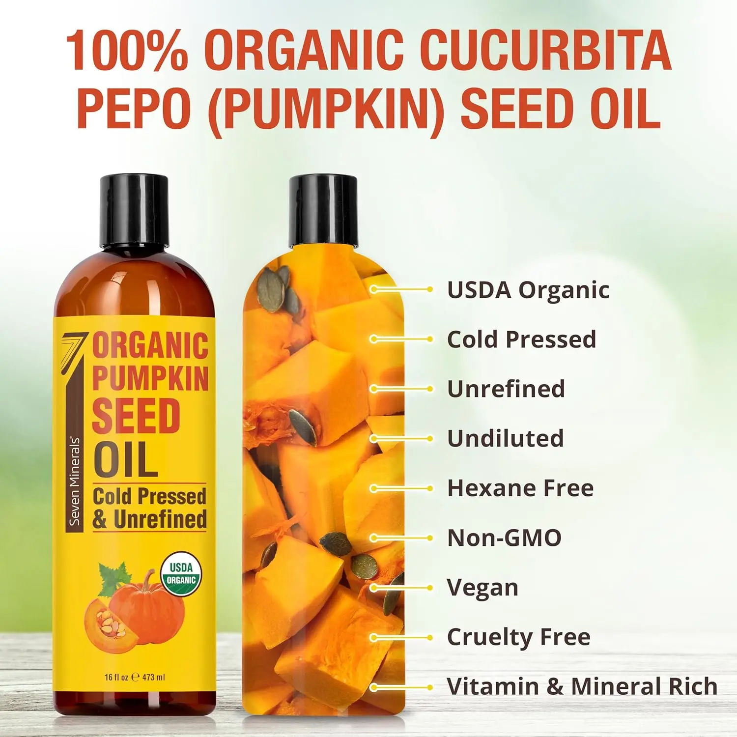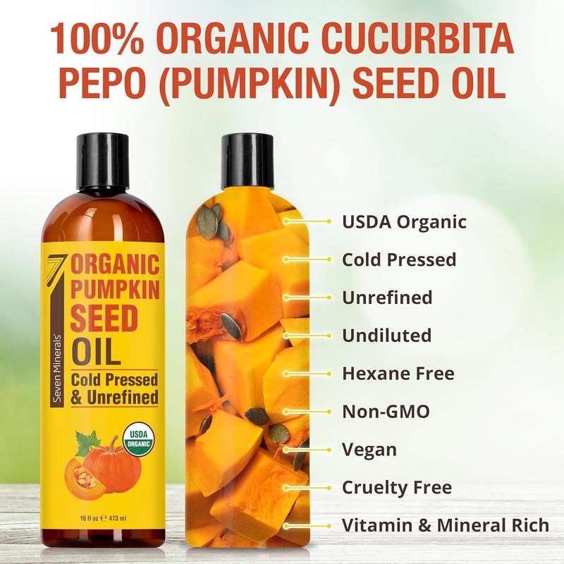 ·TRANSFORM YOUR NATURAL HAIR - Rich in vitamins and nutrients, our USDA Organic Pumpkin Seed Oil for hair deeply moisturizes, strengthens, and adds shine to all hair types. Say goodbye to dry hair/scalp, and hello to smooth, healthy, and vibrant locks.