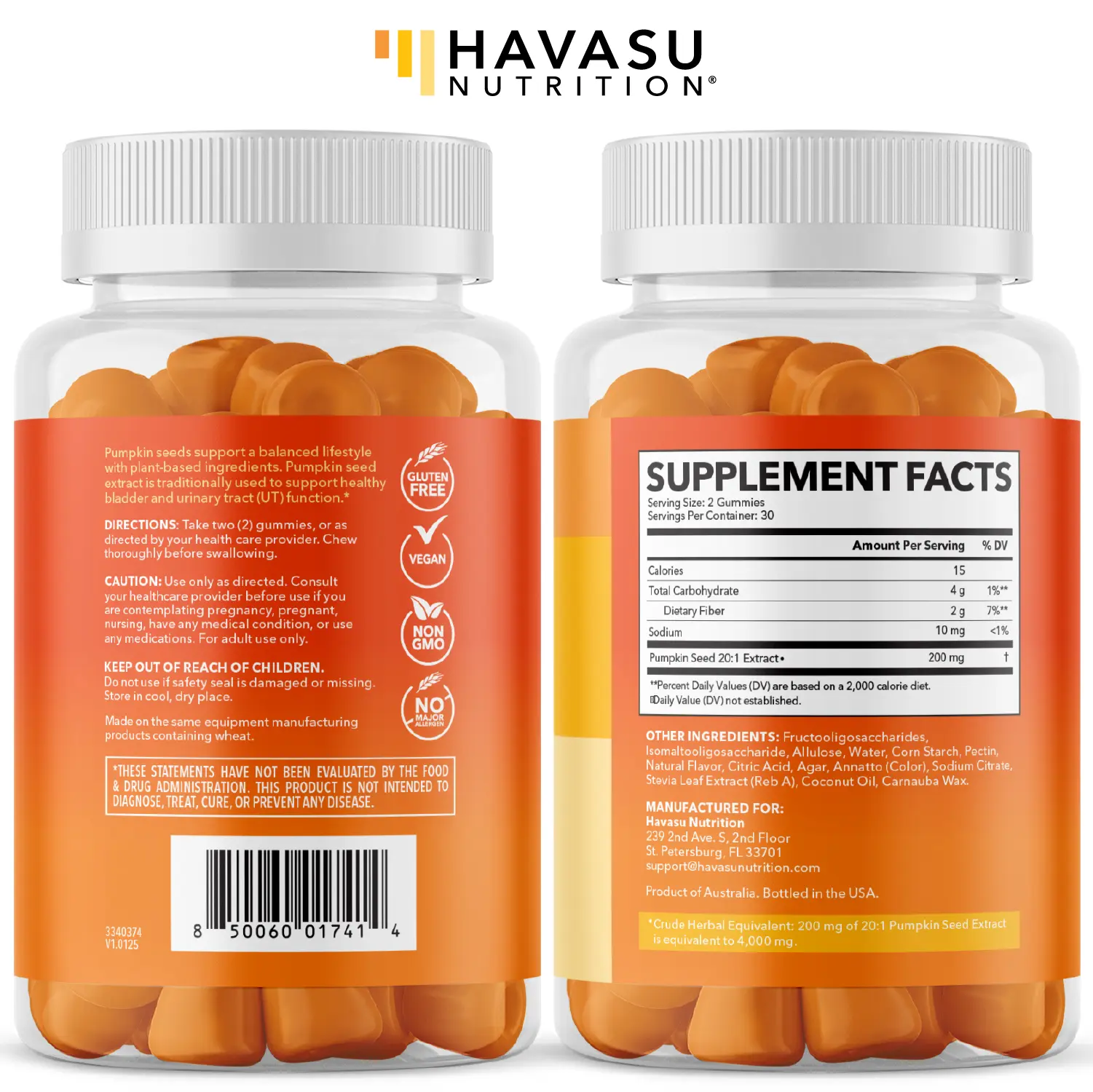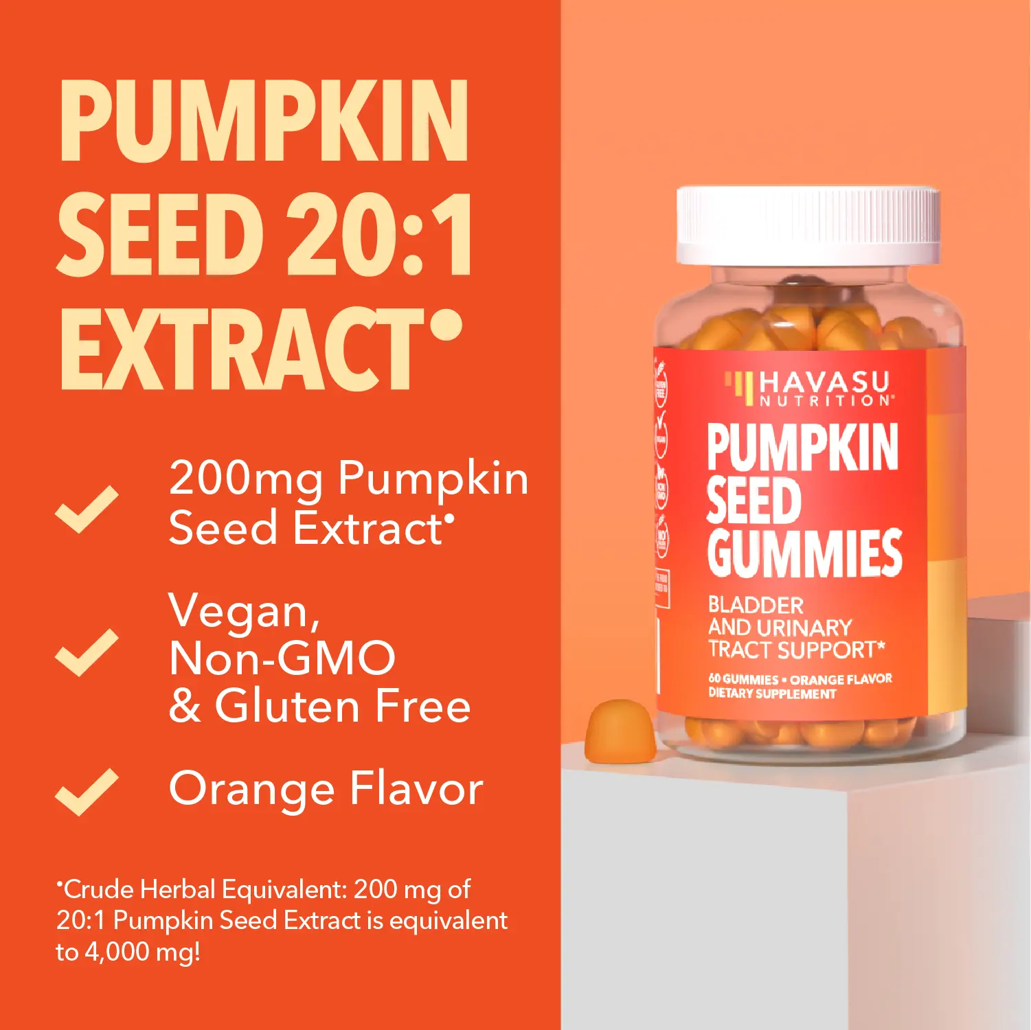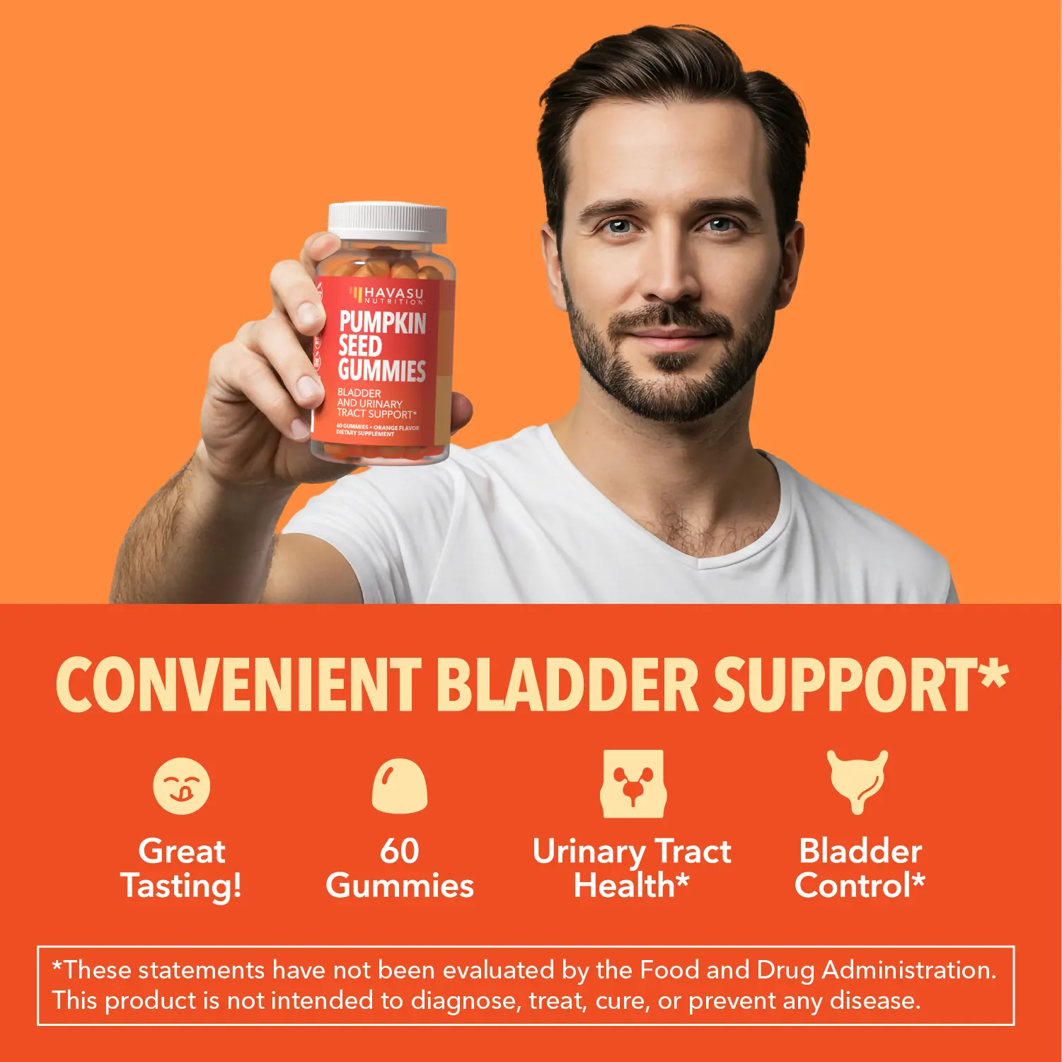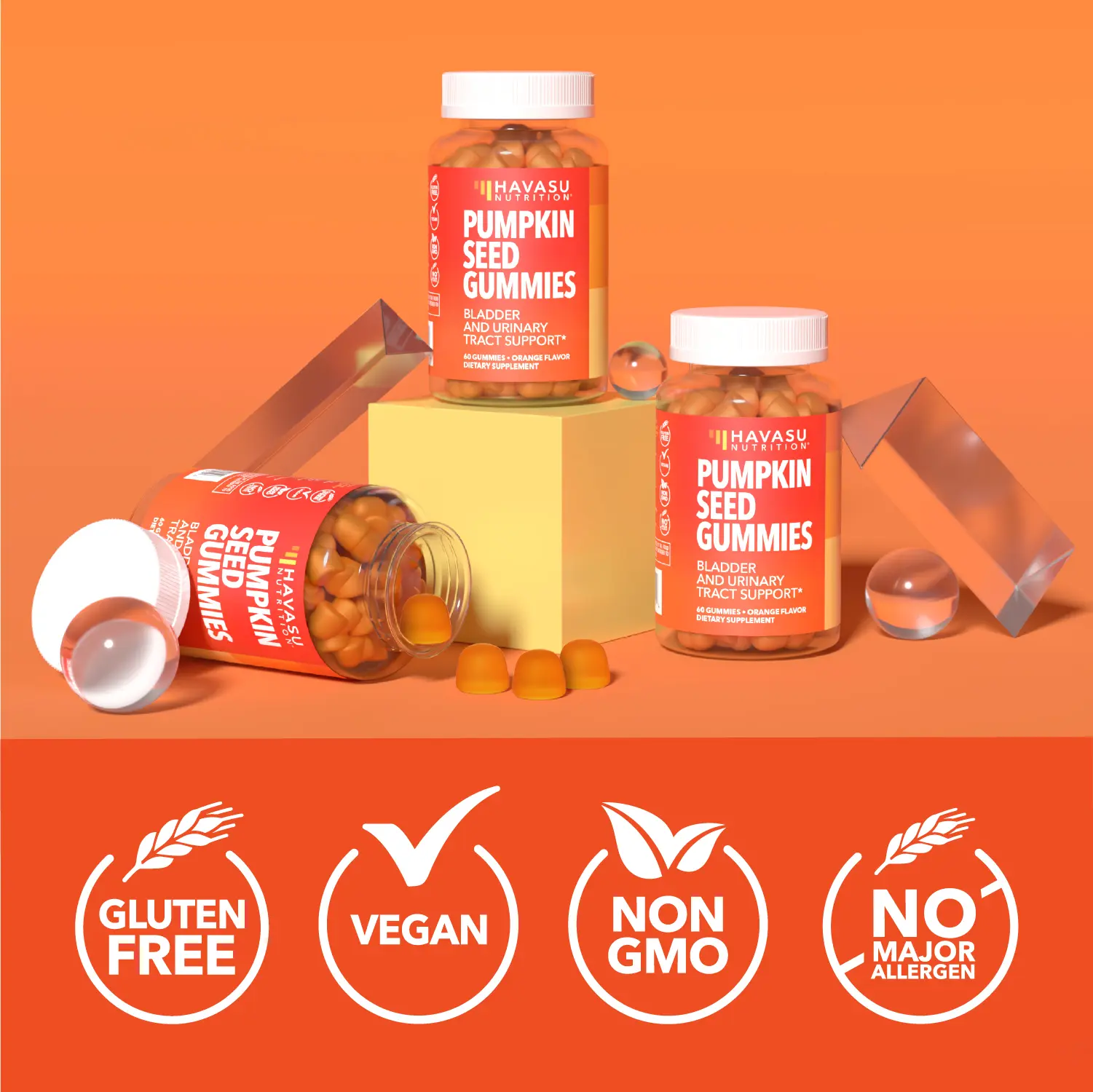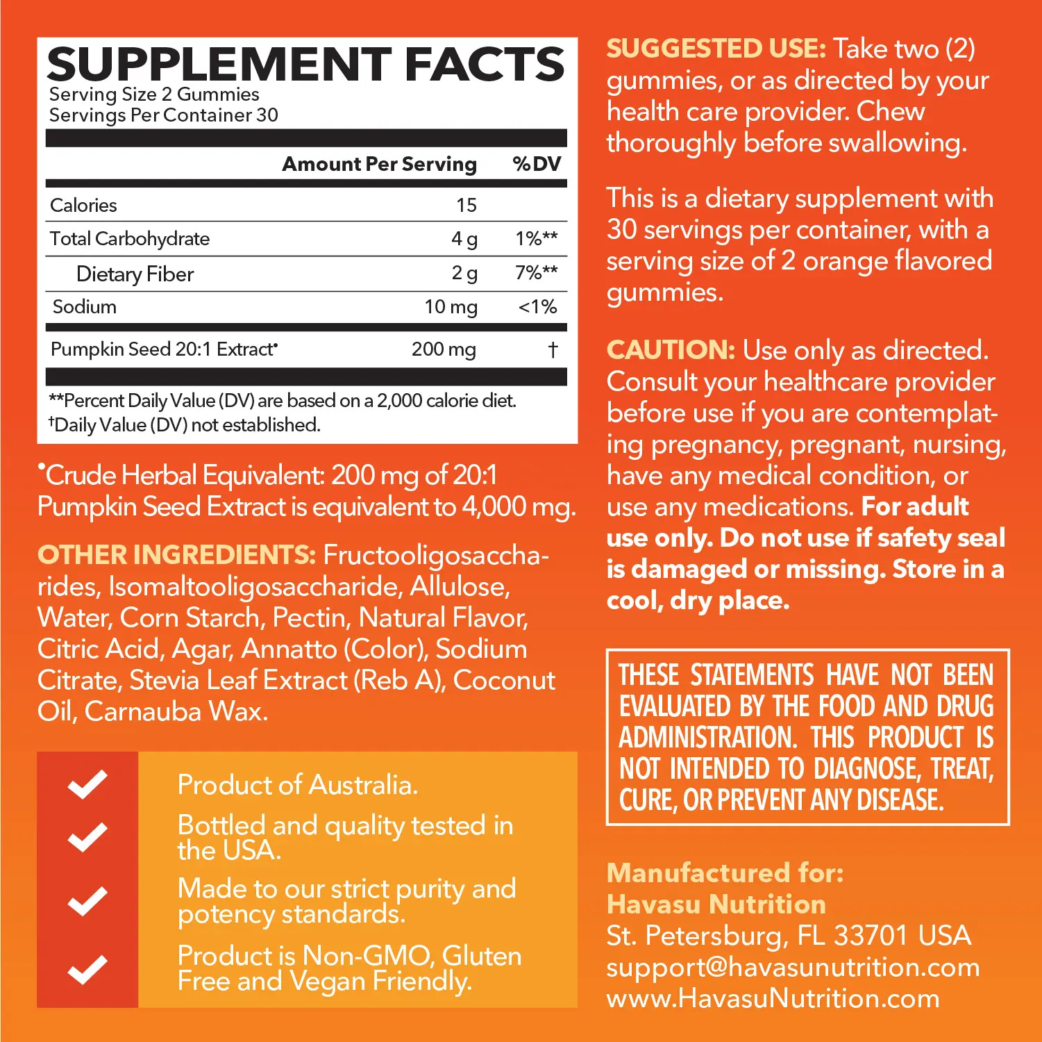 ·Great-Tasting and Sugar-Free - Enjoy bladder and prostate support with orange-flavored pumpkin gummies that are gluten-free, pectin-based, and sweetened with stevia leaf extract. Made on the same equipment manufacturing products containing wheat.