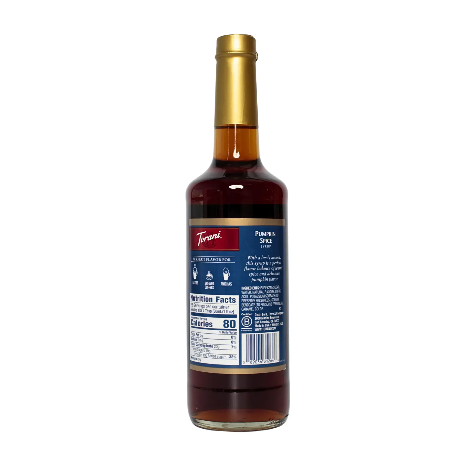 Torani Pumpkin Spice flavoring syrup is a favorite choice for any seasonal or holiday-themed beverages. It is an excellent addition to drinks such as lattes, mocha, hot tea, or even drizzling on top of baked goods.