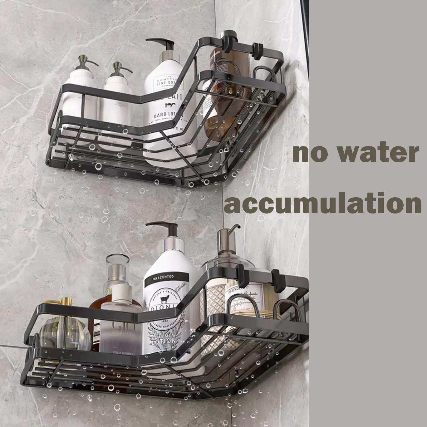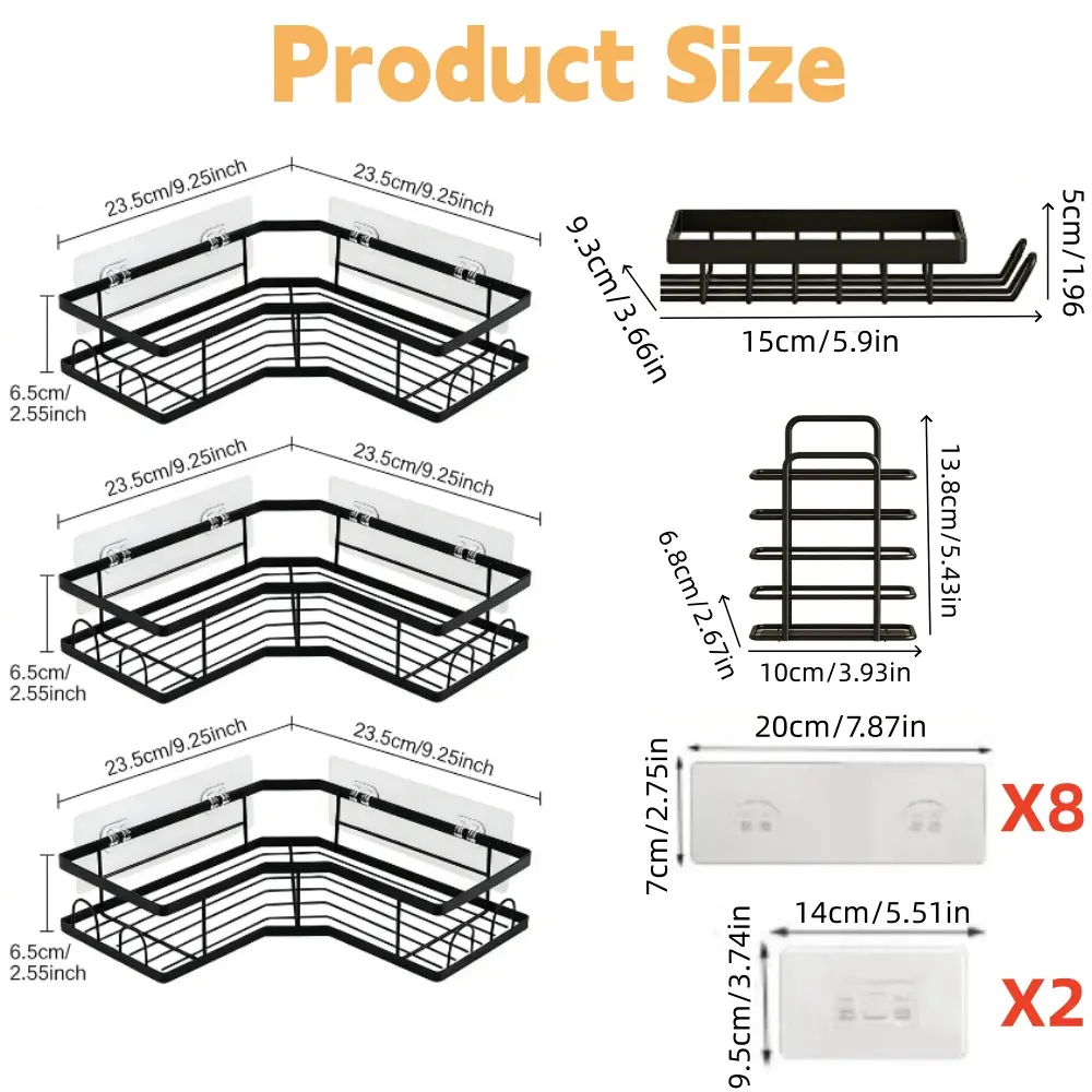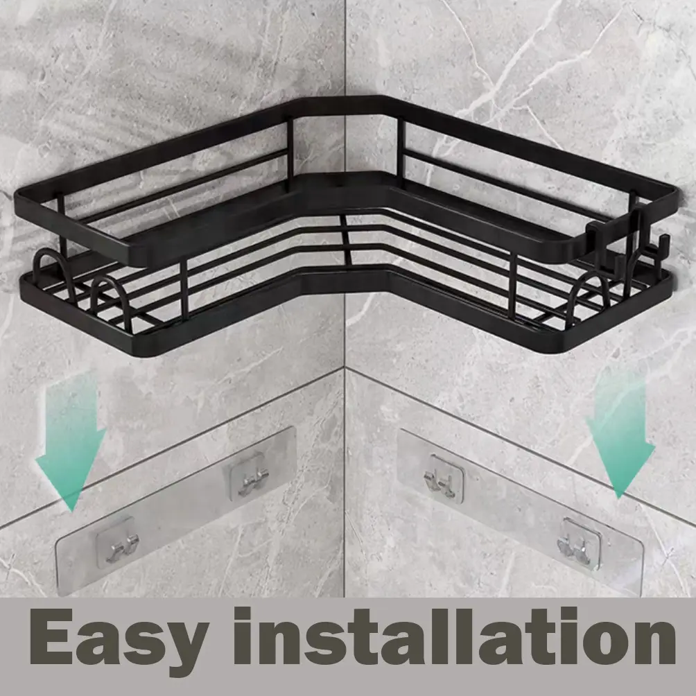 This wall-mounted iron corner storage rack offers a hassle-free setup. No drilling required, making it easy to install in any bathroom or kitchen. It's a quick and convenient storage solution for those seeking versatility. This storage rack is a must-have home goodie. It serves as a versatile storage organizer kit, suitable for various needs in your bathroom or kitchen.