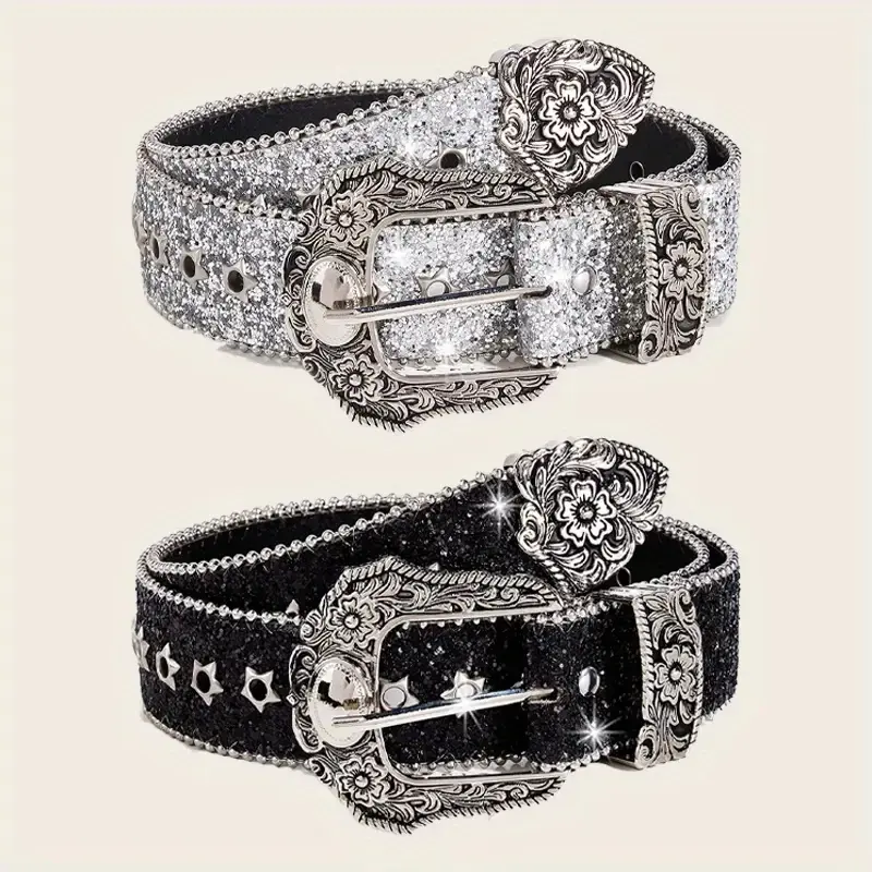 This belt is perfect for both men and women. It features a metal coating and a frame buckle, making it versatile for various outfits. The sparkling design adds a touch of glamour to any ensemble. Ideal for parties or daily wear, it's a must-have accessory. Fits waist sizes 28-40, ensuring a comfortable fit for everyone.