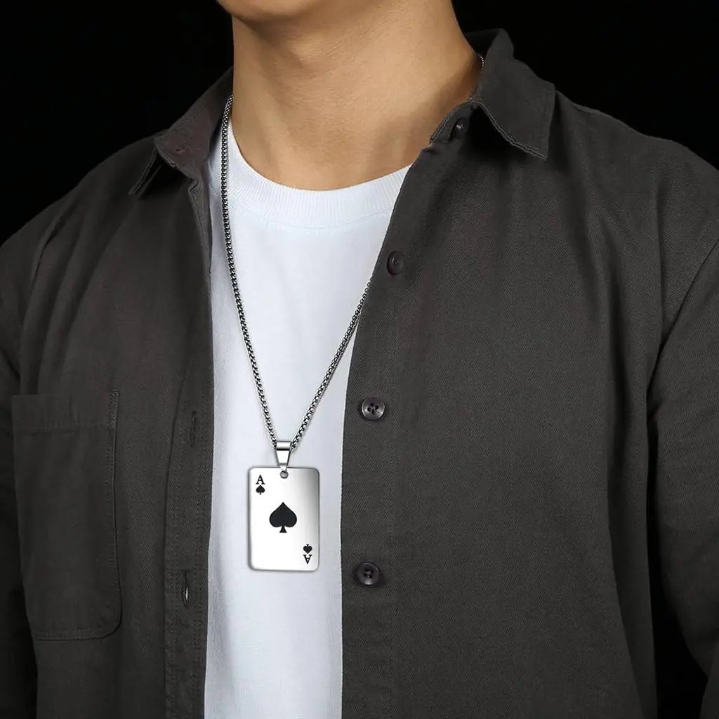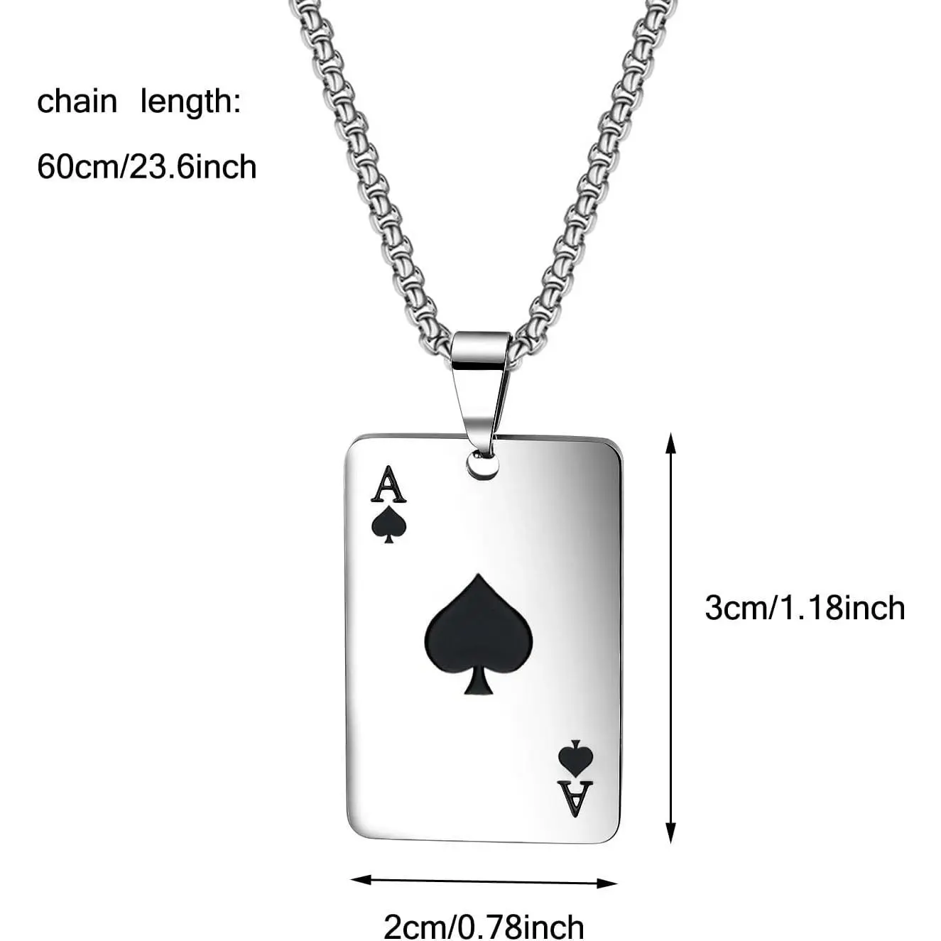 2 pcs Poker Card Necklace, silver, Ace of Spade and Ace Of Hearts. Not suitable for children.