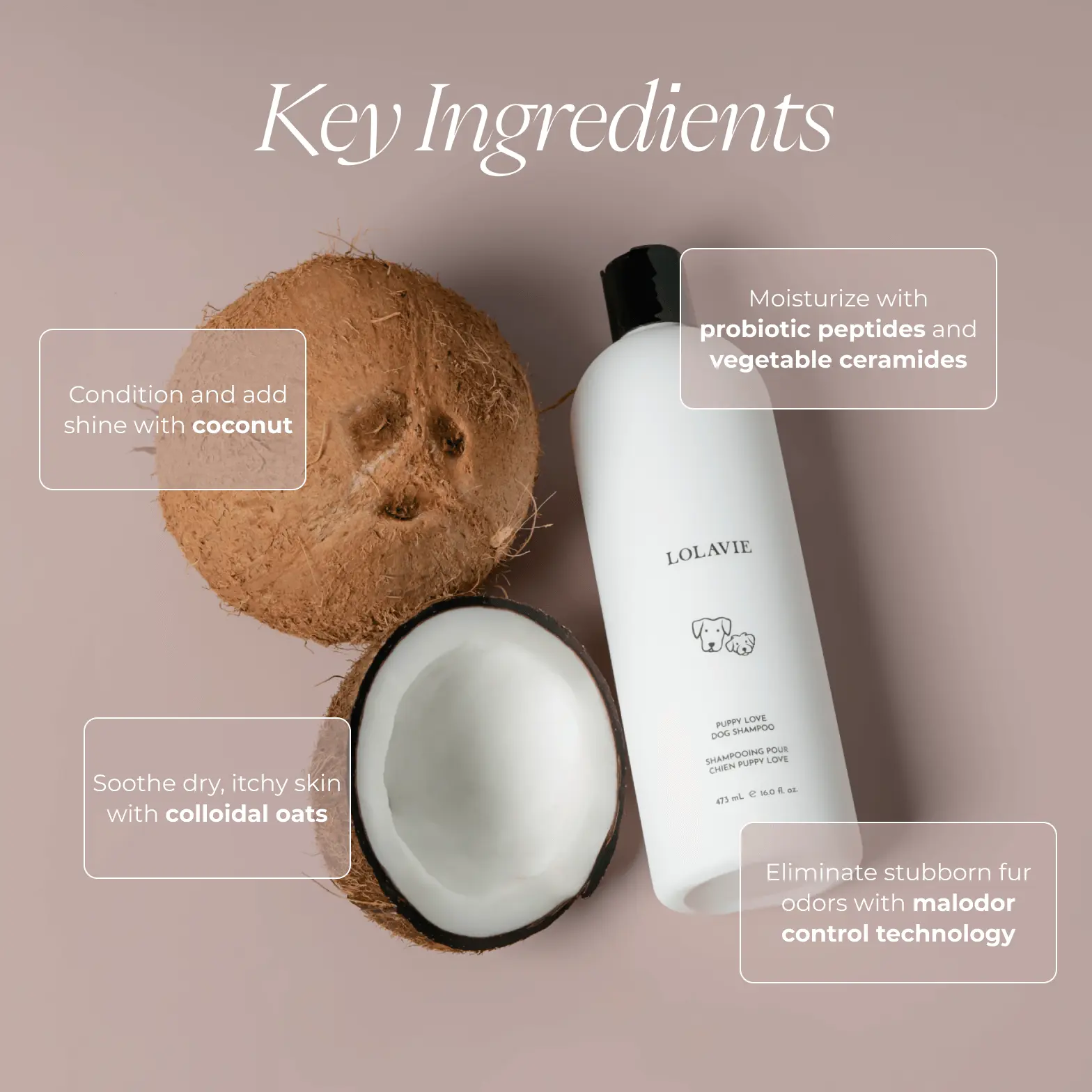 Turn bath time into bonding time with this naturally-derived, pH-balanced formula that features a coconut-derived conditioning blend for a gentle, yet effective cleanse, leaving your pup’s coat soft and shiny. Vegetable ceramides, upcycled orange pulp, and a coconut milk yogurt probiotic deeply moisturize while colloidal oats soothe sensitive skin. Let your pup share your signature scent with the LolaVie fragrance—an herbal, citrus, and woody blend—while benefiting from advanced malodor control technology that eliminates stubborn odors.