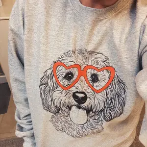 This sweatshirt has an amazing fit. 50+ breeds. Almost matches my dogs face to a T